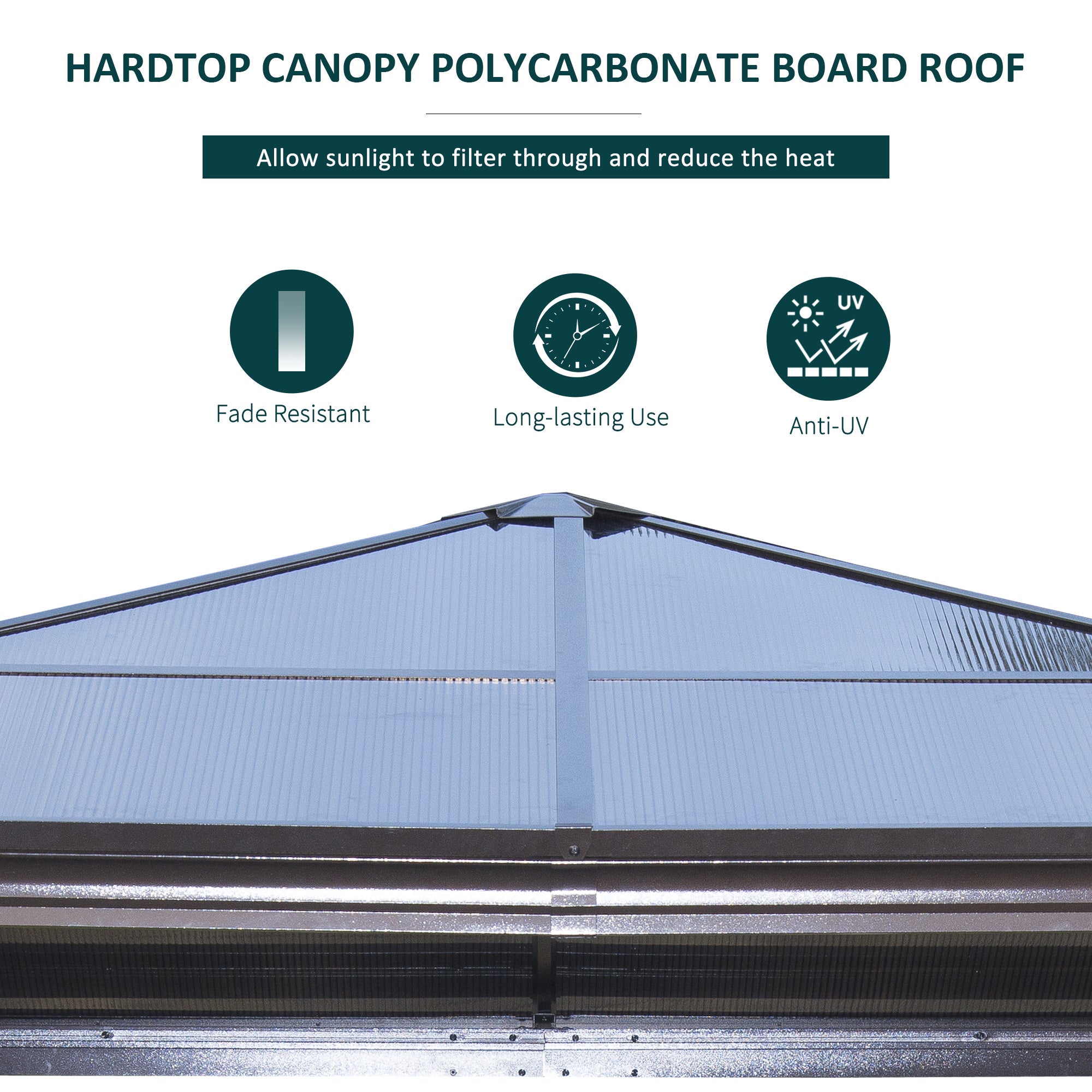 - Hardtop: The canopy is made of lightweight, translucent polycarbonate that blocks rain and UV rays while still allowing light to pass through. The ceiling hook is ideal for hanging light fixtures, a flower basket, or other decorations to personalize the space.