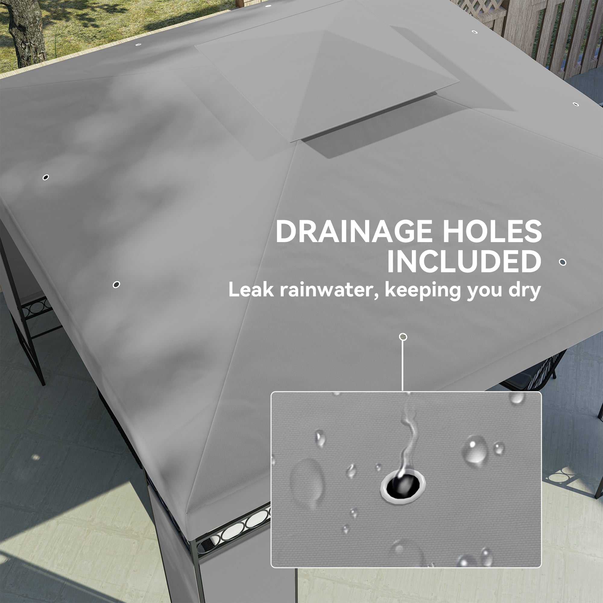 Enjoy a cool and pleasant outdoor space thanks to this double-roof gazebo. Its design promotes air circulation, ideal for staying cool on hot days.