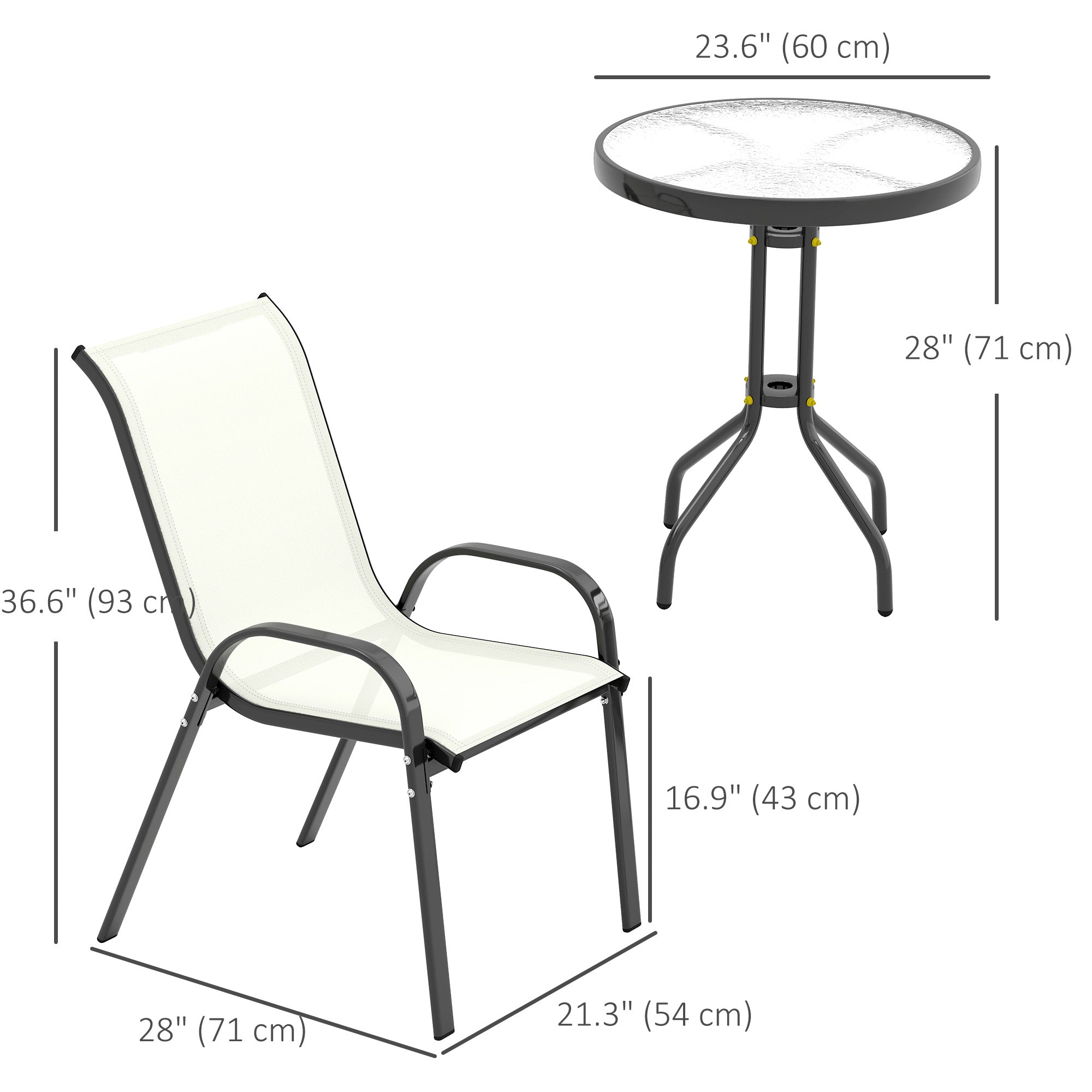 3-Piece Outdoor Bistro Set with Stackable Chairs and Glass Table