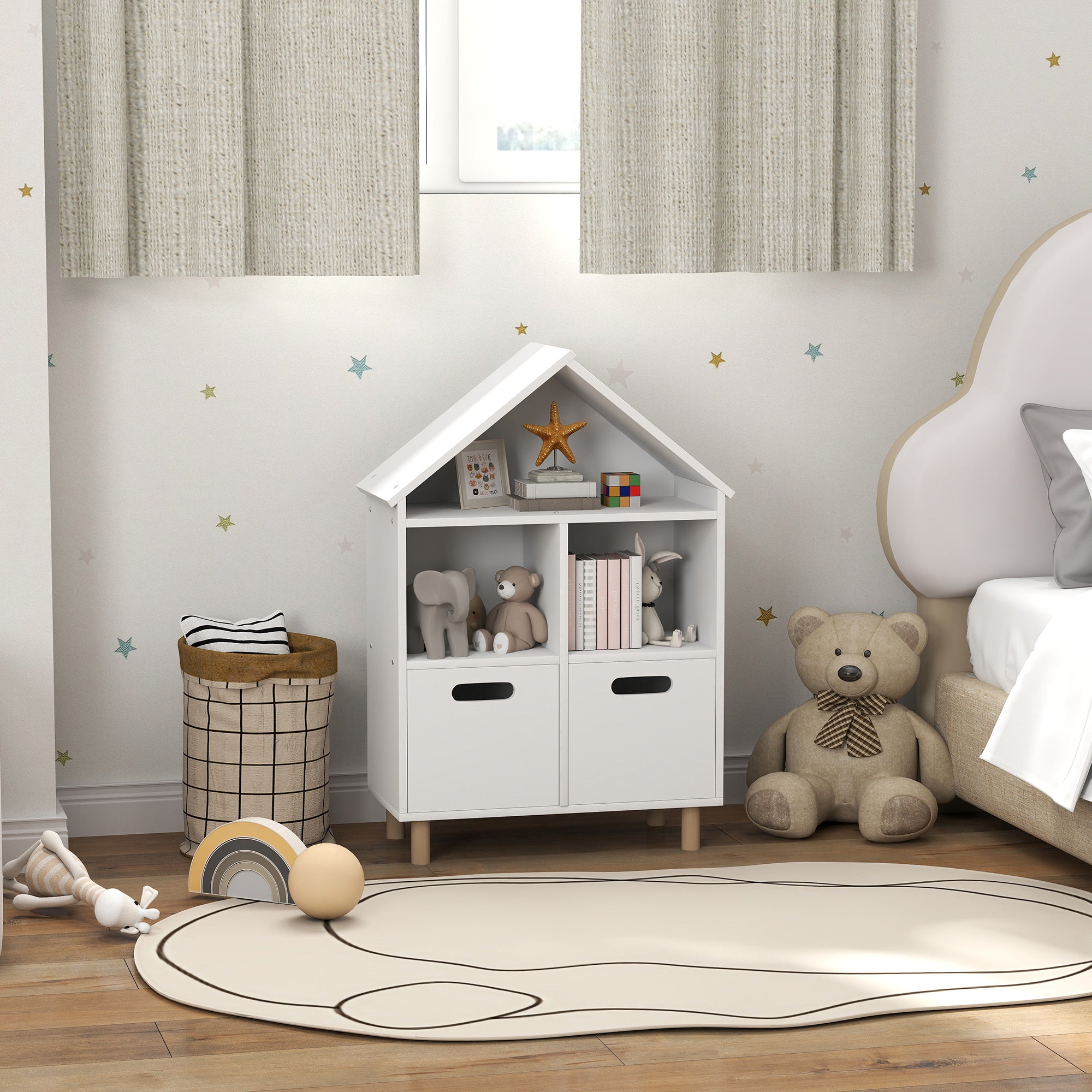 Playful Design: With its house-shaped silhouette, this bookcase adds a decorative touch that stimulates children's imaginations while beautifying the room.