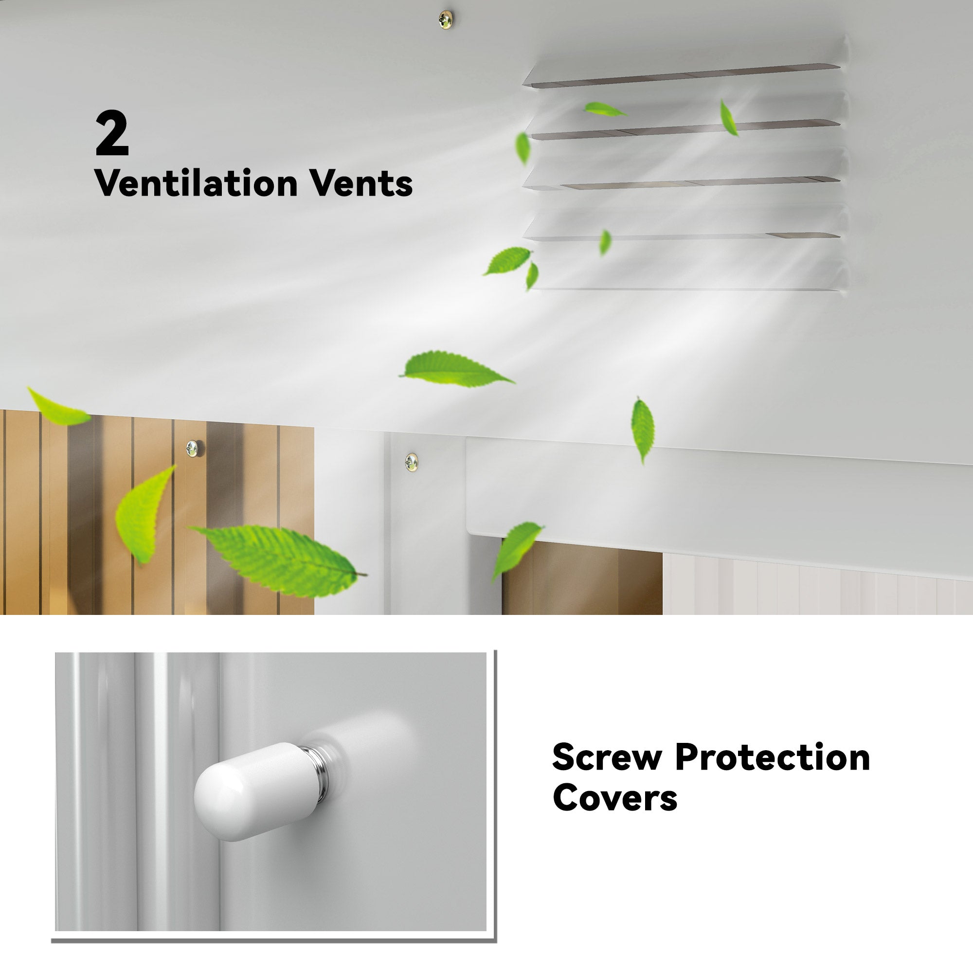 Made from rust- and rain-resistant galvanized steel panels, this shelter is built to last. The combination of galvanized steel and polypropylene ensures a robust structure and reliable protection against the elements.