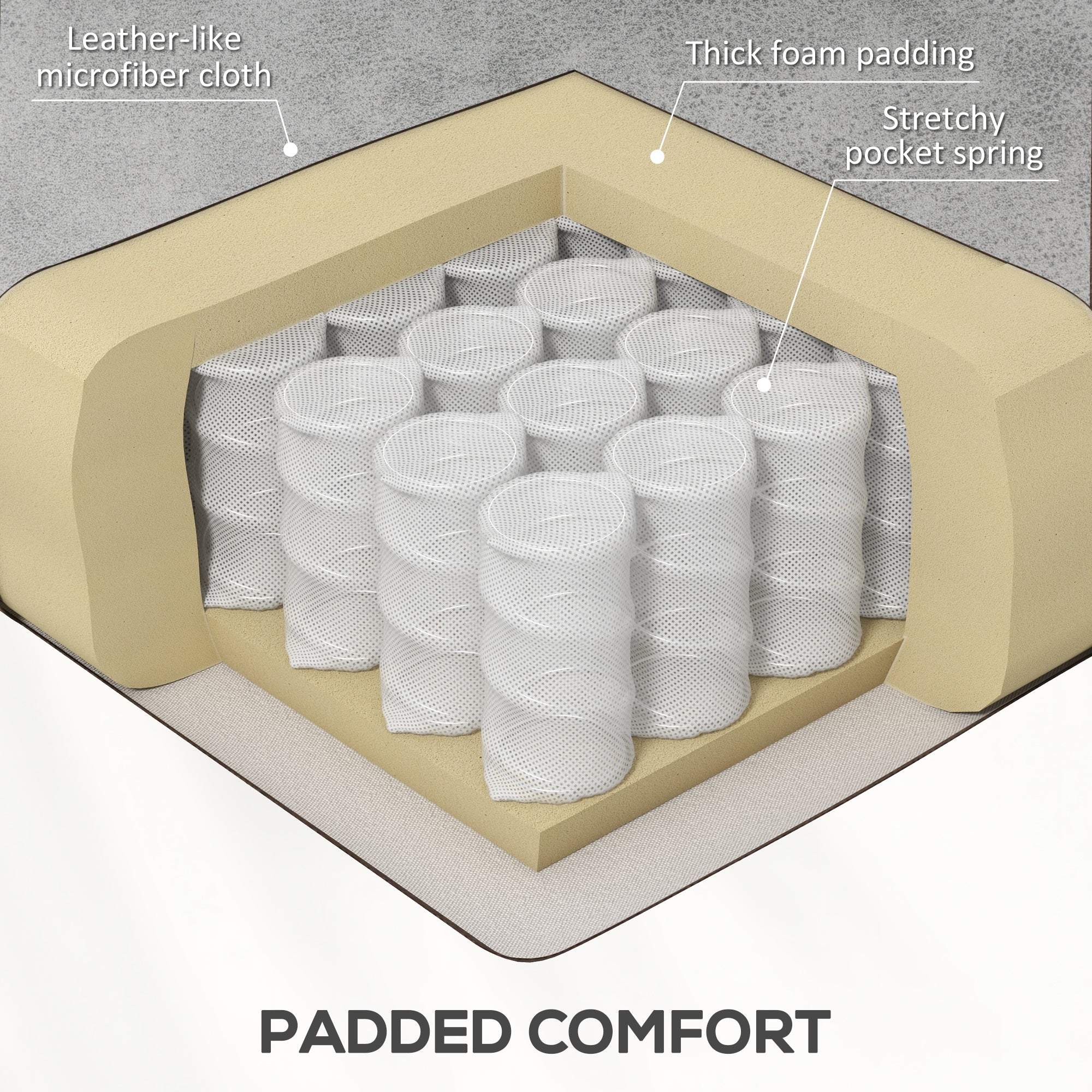 Superior Comfort: The seat combines a pocket spring system and elastic bands for a soft, bouncy seat. The thick cushions and soft microfiber upholstery provide optimal comfort while being easy to maintain.