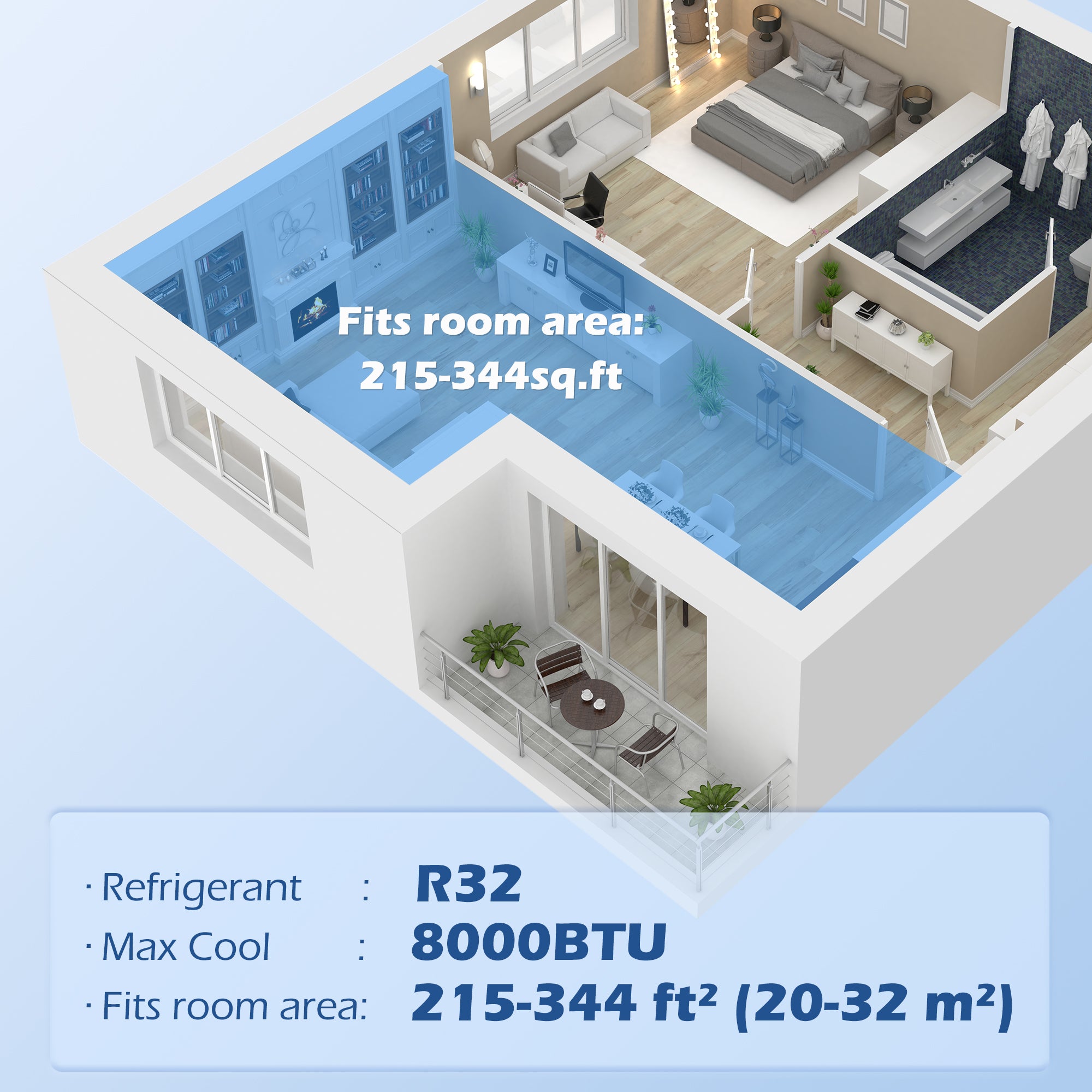 - Portable Design: Compact and powerful, this air conditioner is designed for small spaces. Its 4 swivel casters allow for easy movement on different floor types. It cools rooms up to 344 sq ft with 8,000 BTUs of power.