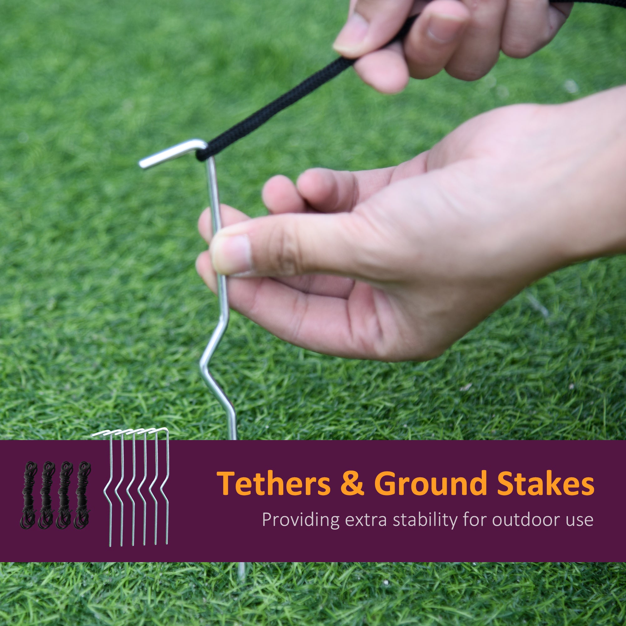 - Accessories supplied: 1 internal fan (12W/1A), 6 stakes, 4 ropes, sandbag