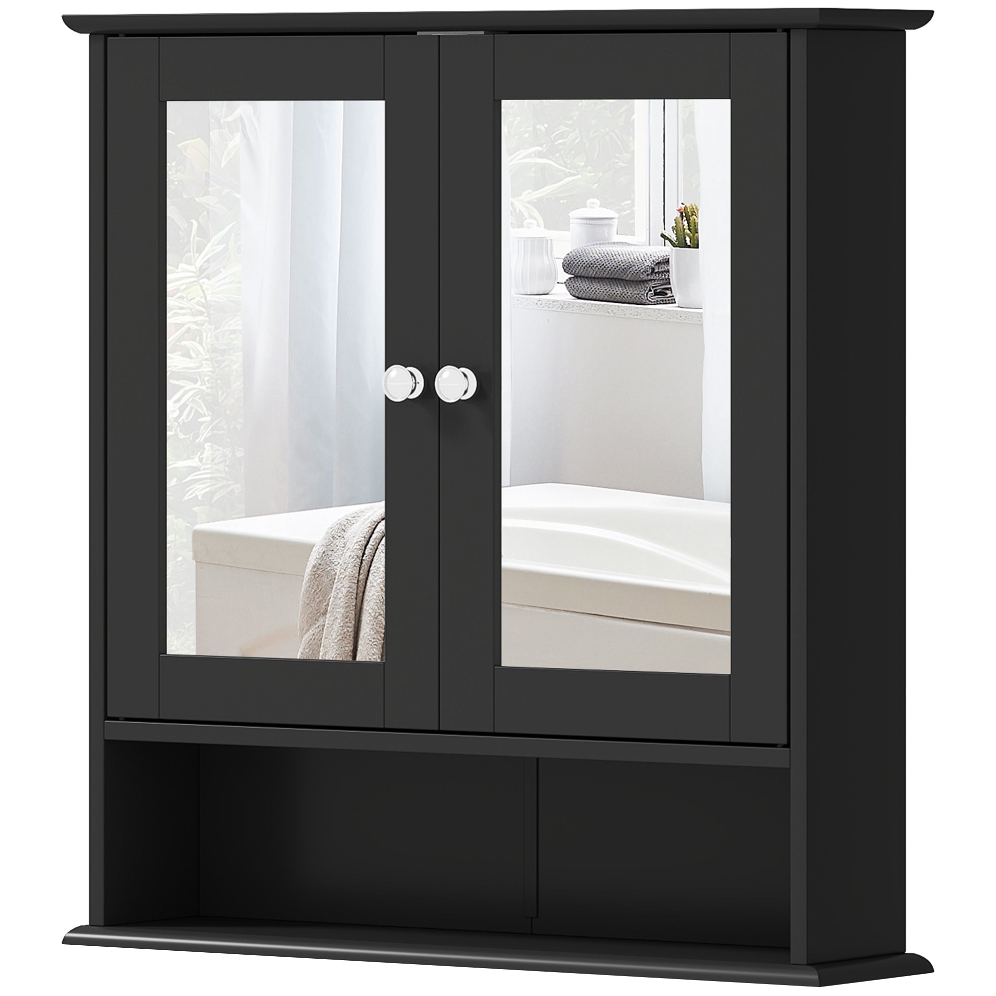 - Front Mirrors: Installed on each door, it's easy to see your reflection - you can get ready easily, day or night, with this wall-mounted bathroom cabinet.