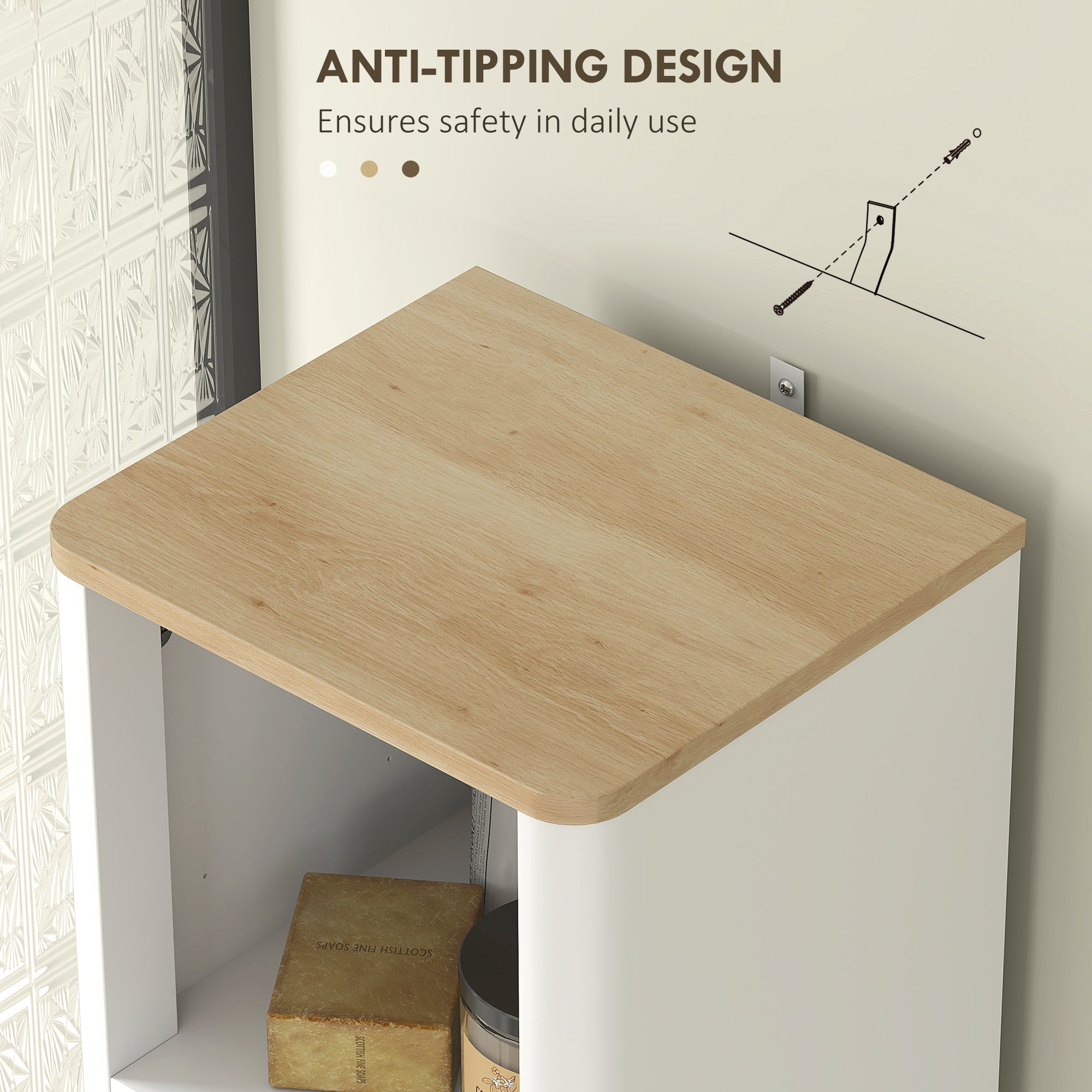 - Stable and Safe: Made of quality MDF and designed with rounded edges and anti-tip function, this slim bathroom storage cabinet is supported by four legs, ensuring both stability and safety