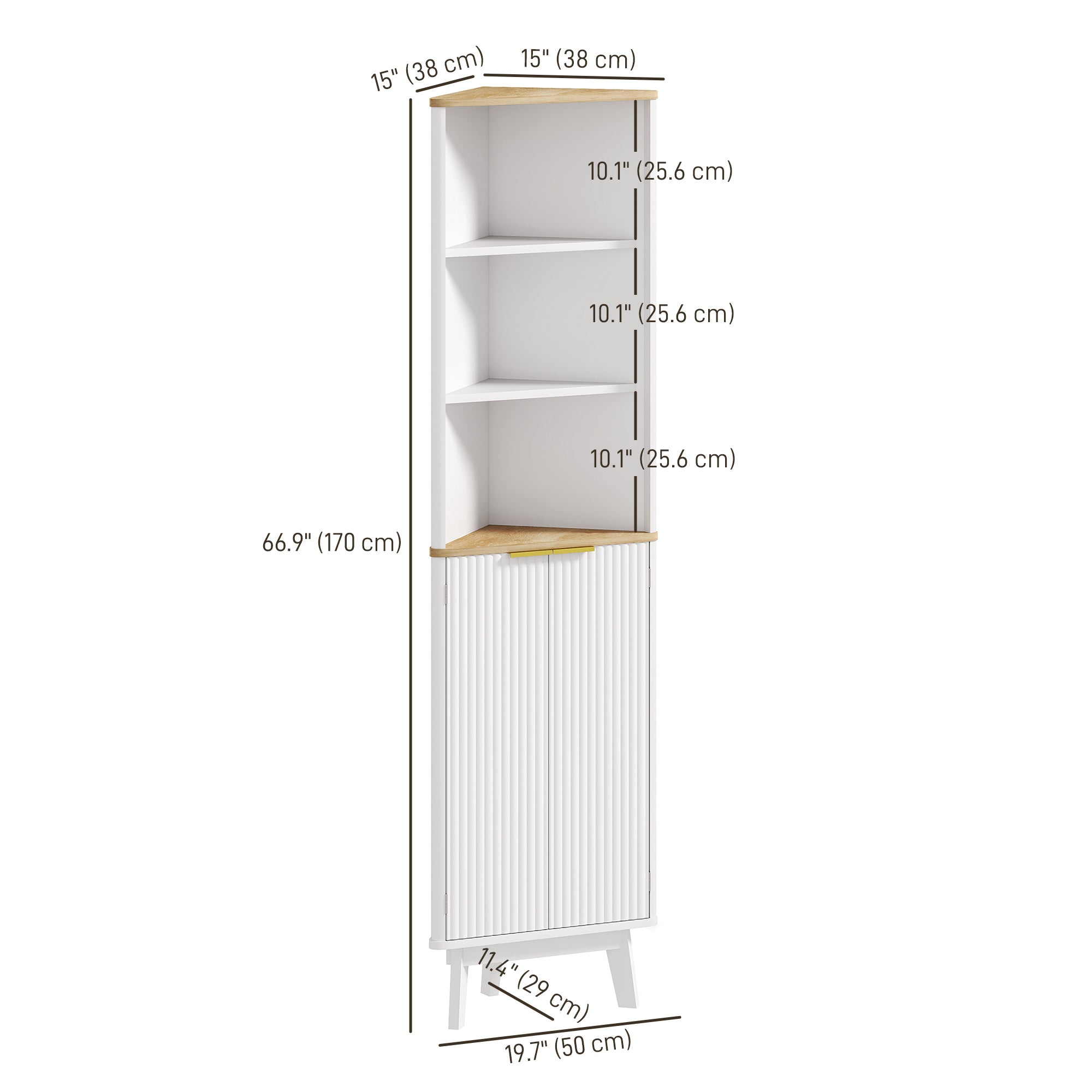 - Sophisticated Design: Modern touches such as gold handles and fluted panel doors with oak tops complement the curved design of this large storage cabinet, enhancing both design and security