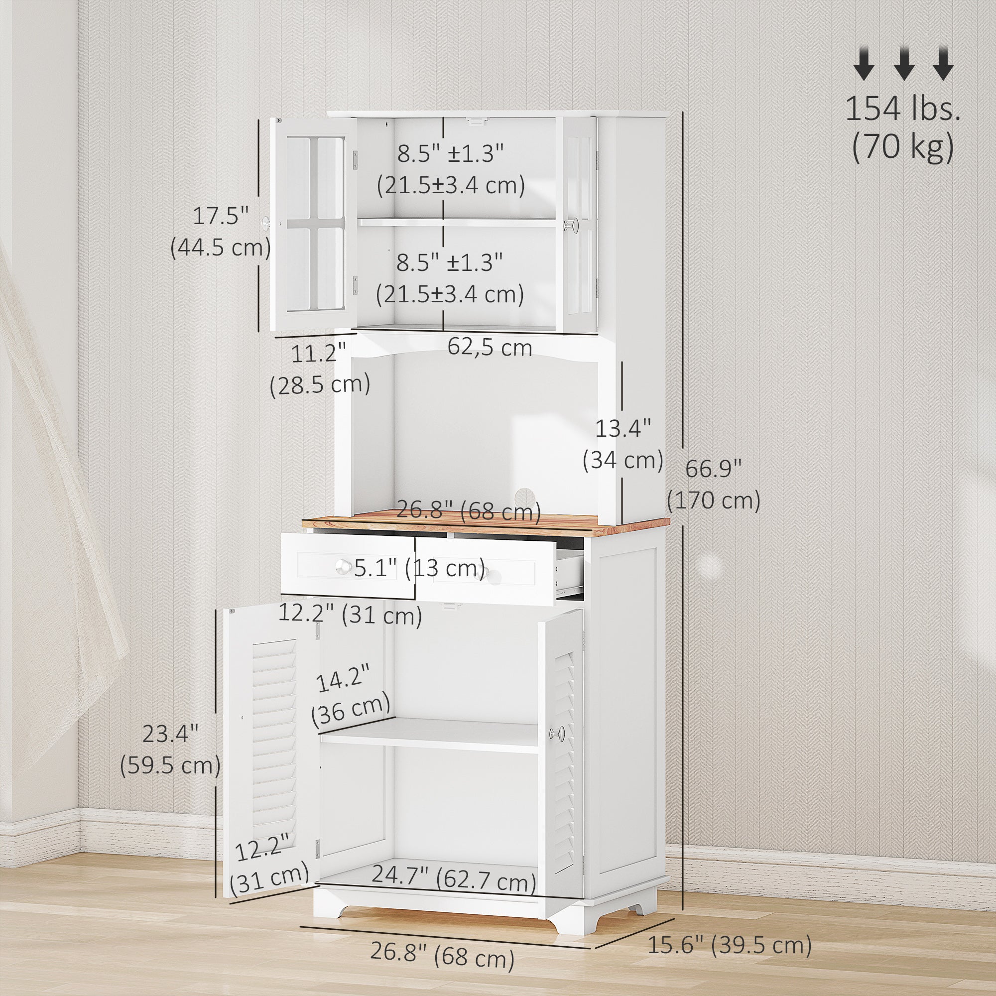 - Overall dimensions: 26.8" W x 15.6" D x 66.9" H (68 x 39.5 x 170 cm)