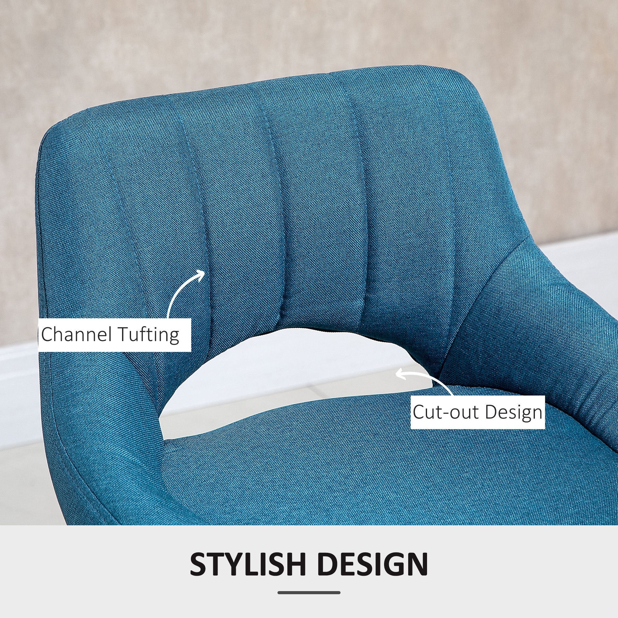 Comfort and design: These two bar stools combine modern elegance with comfort. Their blue fabric-upholstered seats and backs bring a touch of freshness to your kitchen, island, or bar. The tufted backrest and curved shape provide excellent back support, while the refined finish highlights their contemporary style.