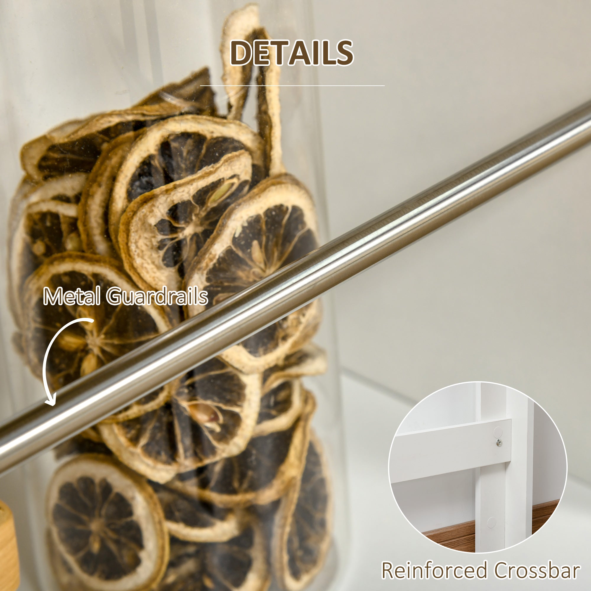 Quality materials: Made from durable particleboard, this bar table ensures good stability for everyday use. Its open shelves are equipped with side barriers to prevent items from falling, ensuring safe and well-organized storage.