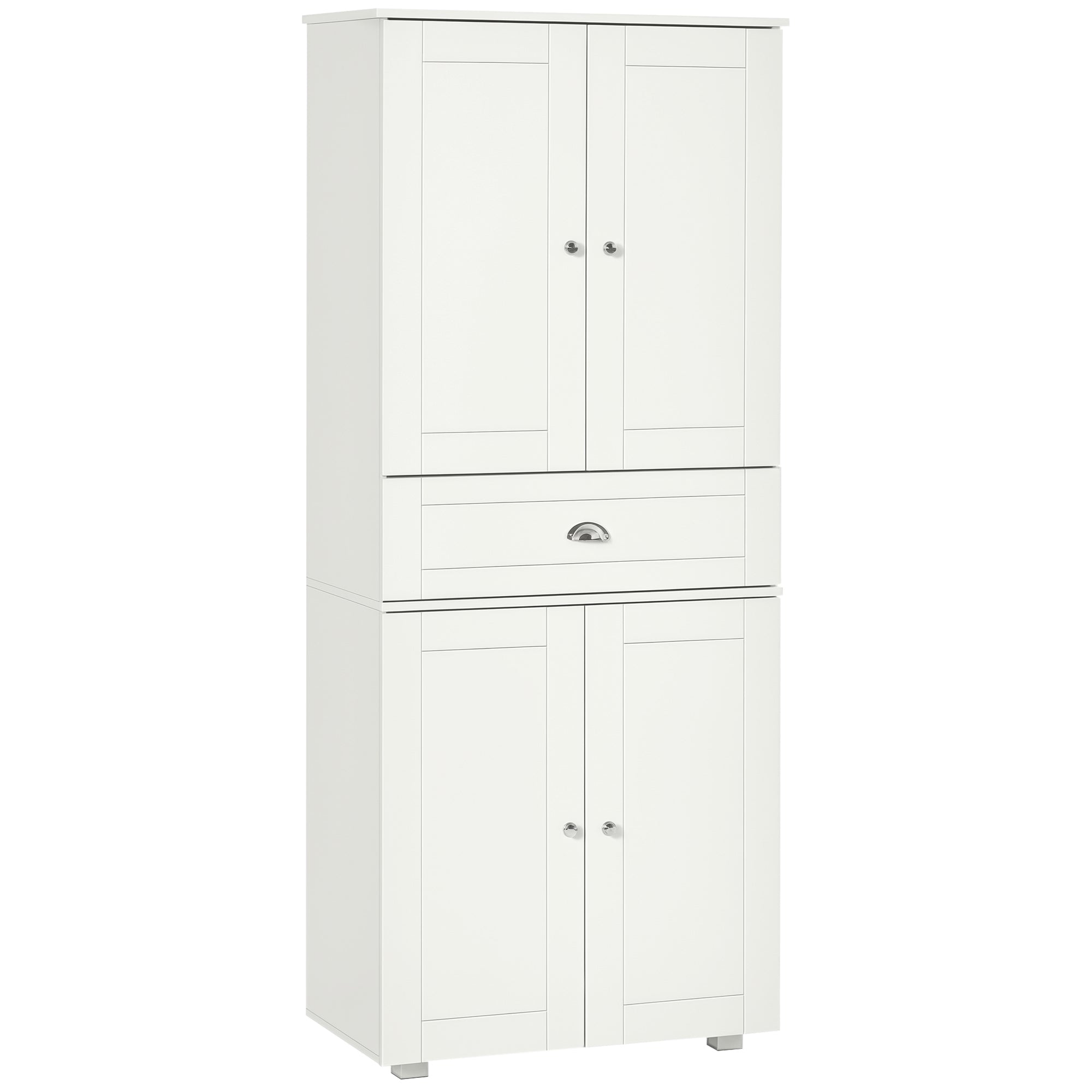 Versatile Use: Featuring two spacious cabinets and a large center drawer, this pantry offers ample storage space for your plates, pots, jars, and accessories. The three adjustable shelves allow you to adapt the space to your needs, while its simple, functional design blends perfectly with any decor, from modern to rustic chic.