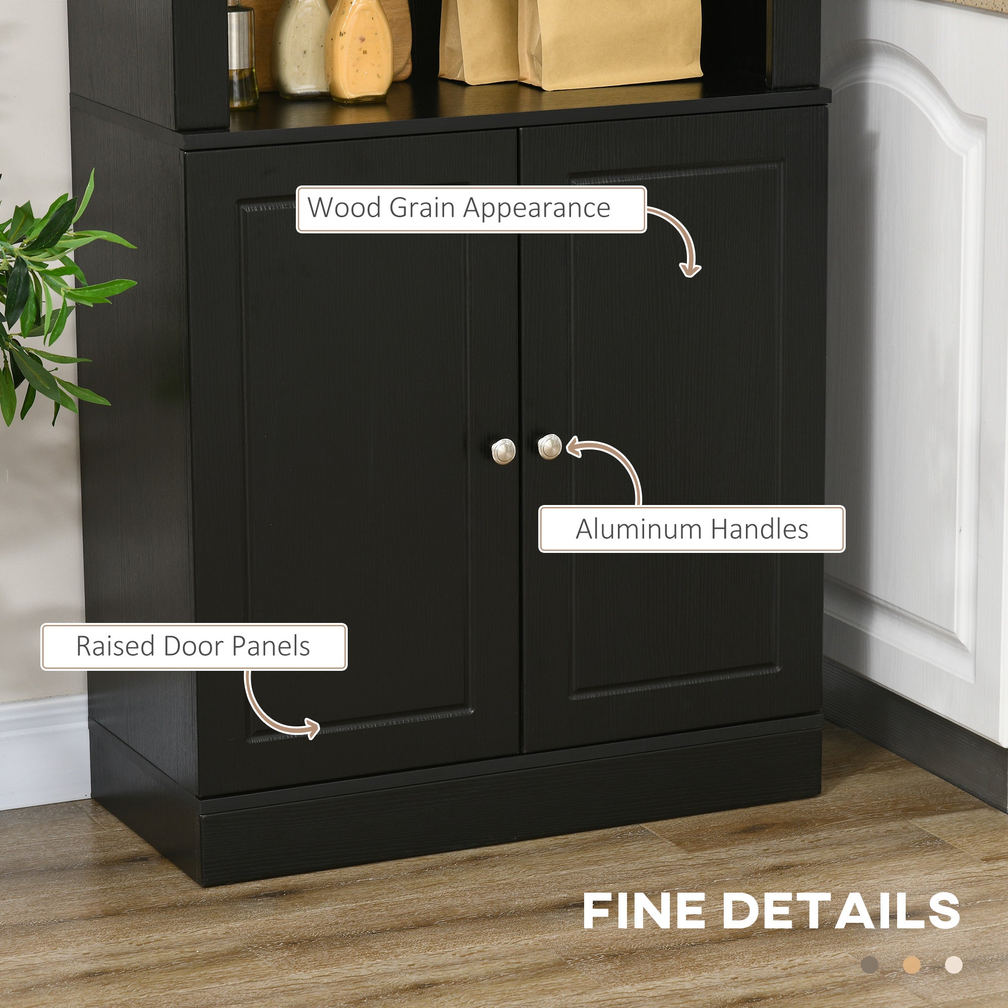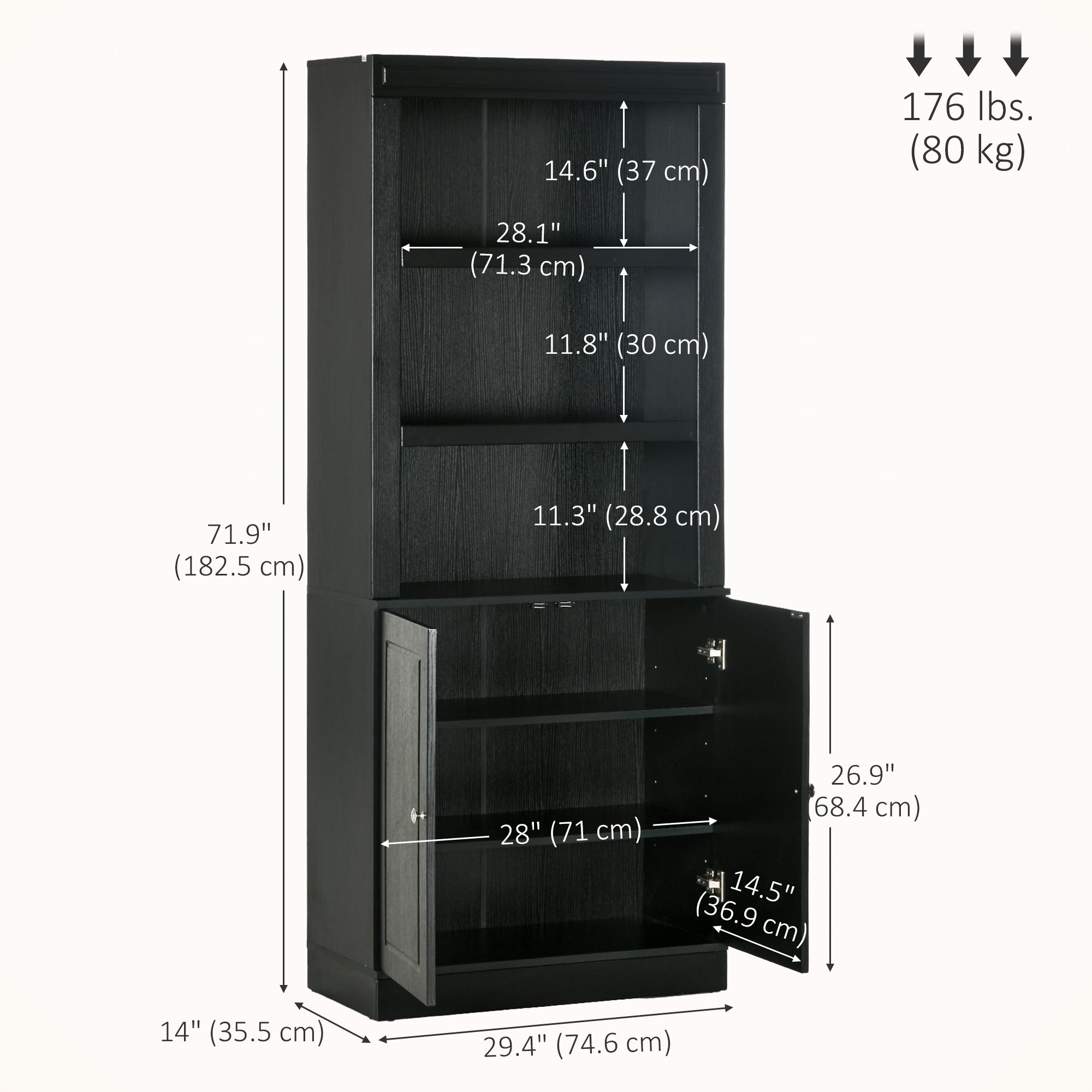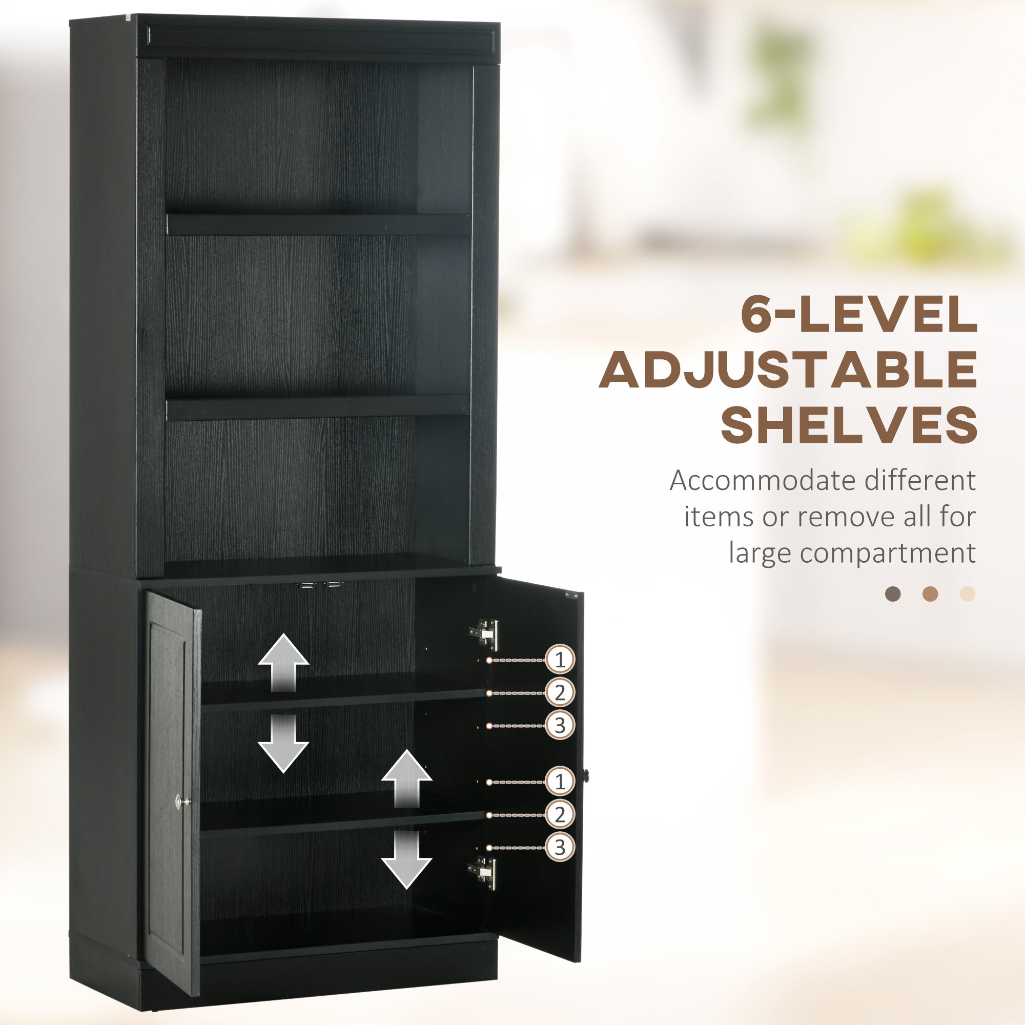 Practical and versatile storage: Featuring three open compartments and a large two-door cabinet, this piece of furniture offers ample space for organizing your books, dishes, glasses, or kitchen accessories. The six-tier adjustable shelves easily adapt to your needs, allowing you to store items of different sizes.