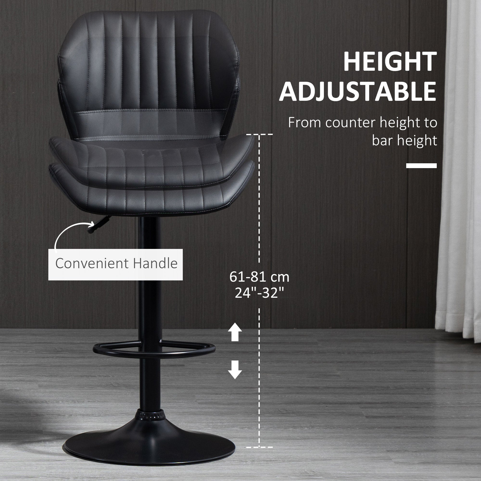Swivel bar stools in PU leather with shell backrest – Set of 2 (Black)
