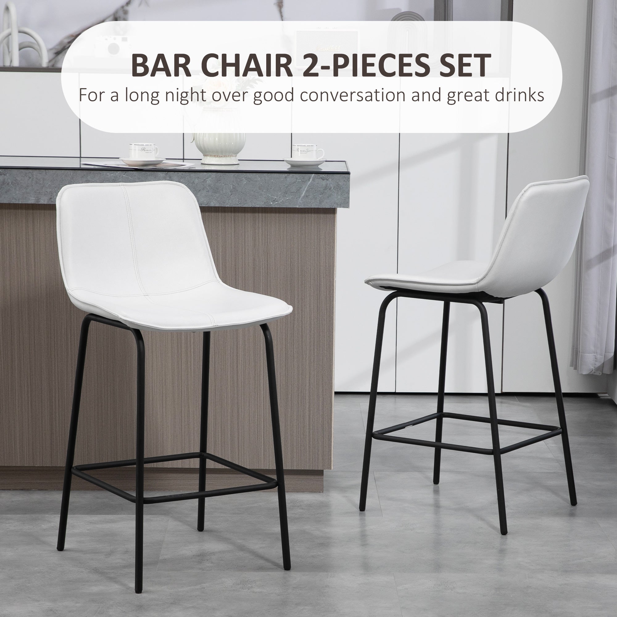 Versatile use: Ideal for a 35- to 39-inch countertop, they're perfect for a quick breakfast or an evening drink. Their integrated footrest prevents legs from dangling, ensuring a relaxed and ergonomic seating position.