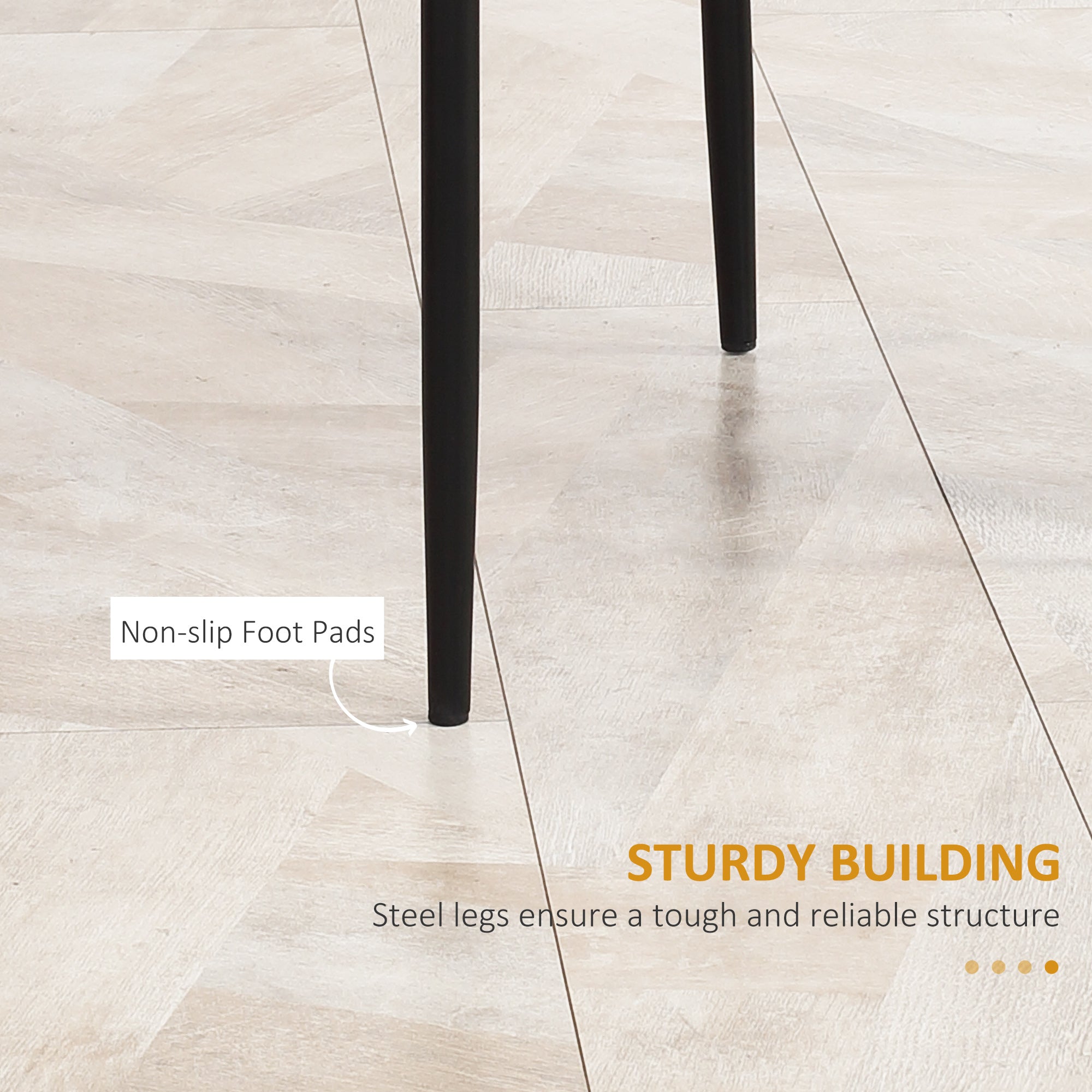 Versatile use: Thanks to their chic and clean design, these chairs easily find their place in a dining room, kitchen, living room, bedroom, or even a workspace. They blend naturally with different decorating styles.