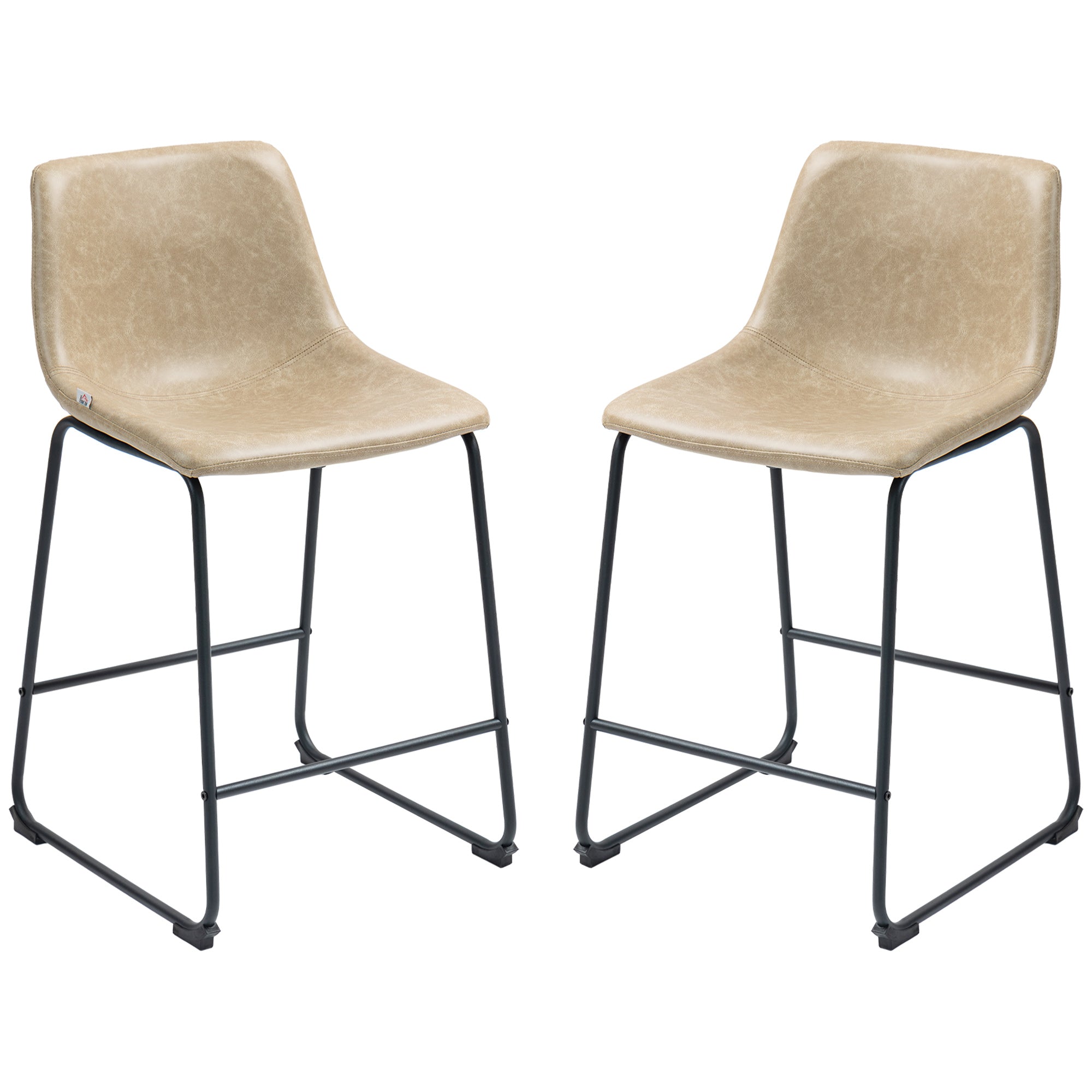 Set of 2 beige bar stools with an aged leather effect – retro style and modern comfort