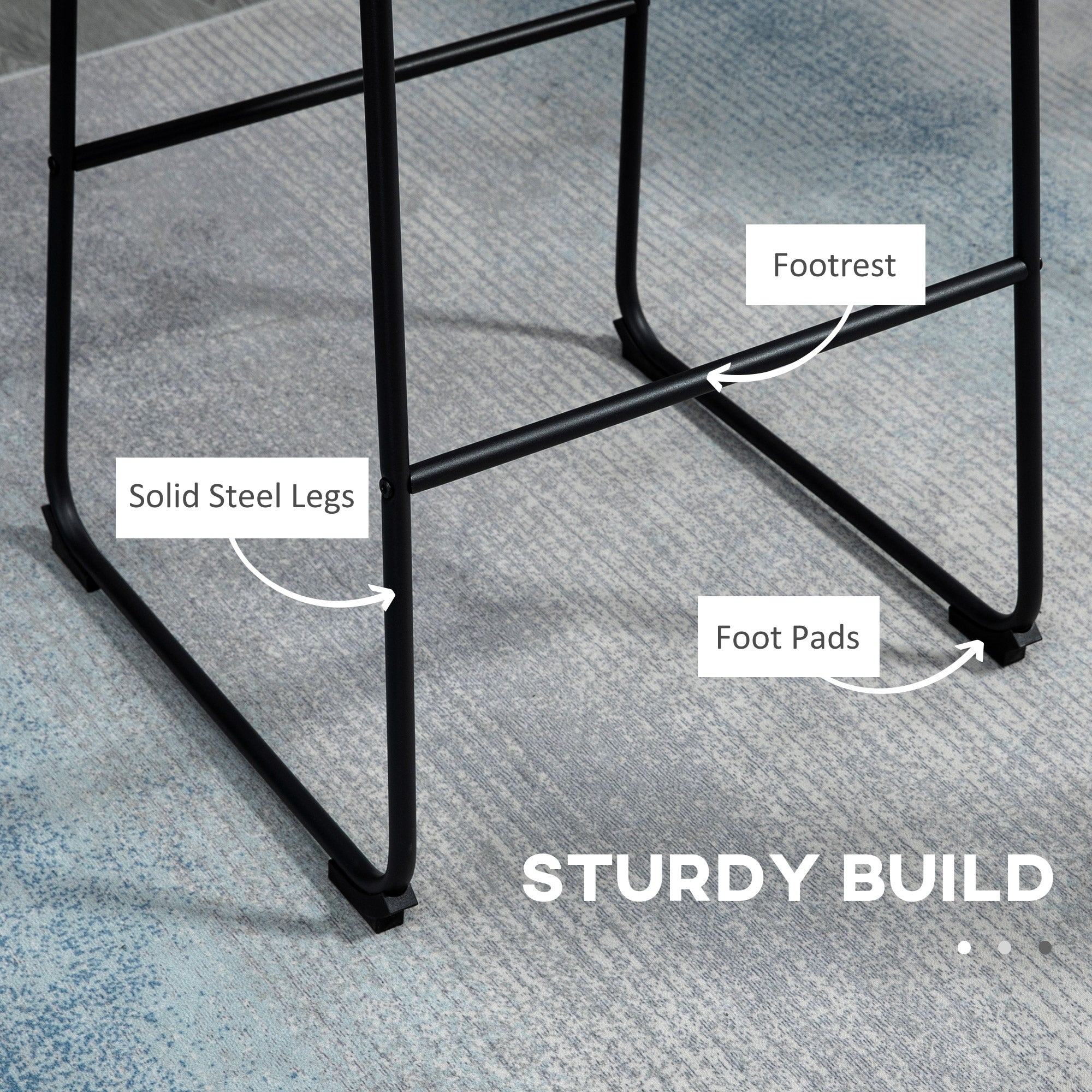 Quality materials: Made with a sturdy steel frame and a soft, durable PU leather cover, these stools are built to last. The non-slip feet effectively protect floors while ensuring stability.