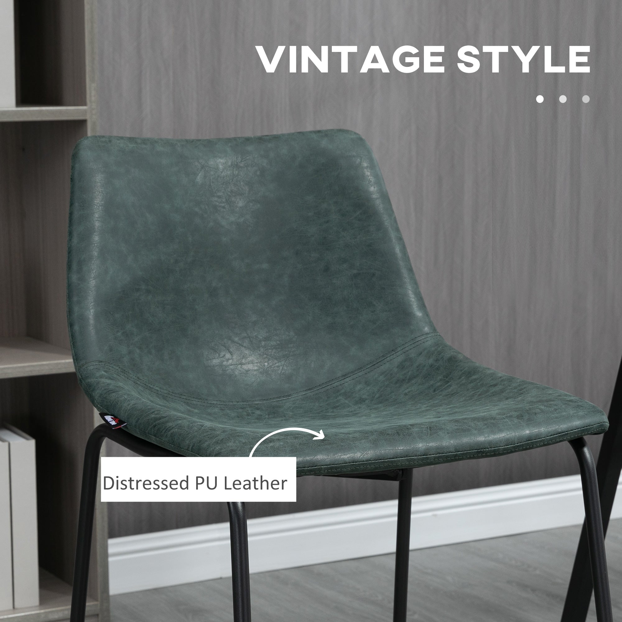 Comfort and style: Add a touch of distinction to your dining area with these dark green bar stools in distressed faux leather. Their rich color and refined texture add a chic vintage touch to your décor. The padded seat and medium backrest offer comfortable seating for long conversations around the bar.