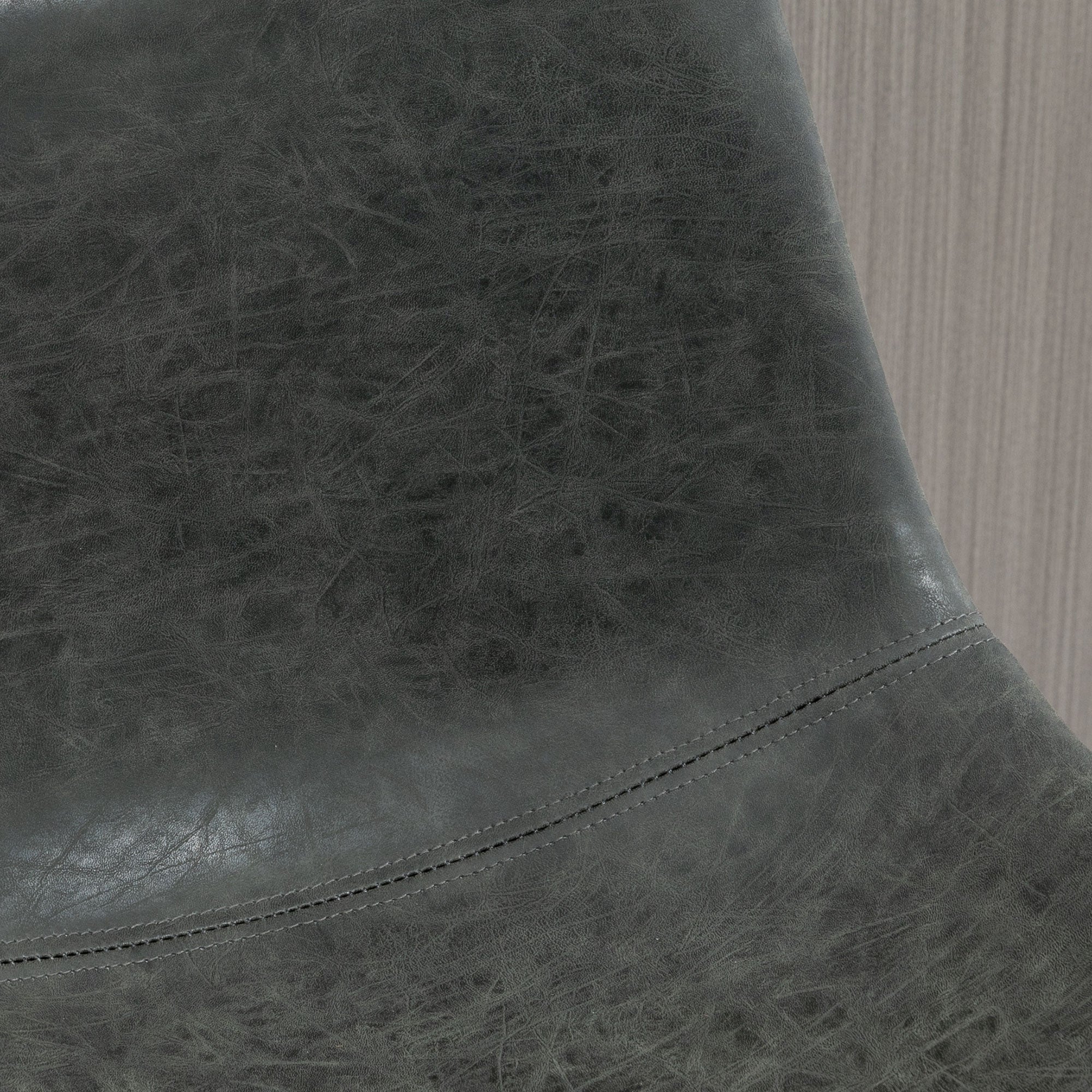 Comfort and design: Give your kitchen or bar area a sophisticated look with these dark gray bar stools with industrial charm. Their distressed PU leather finish and clean lines create a perfect balance between contemporary style and comfort. The soft seat and mid-height backrest provide excellent support, ideal for meals, coffee breaks, or evenings with friends.