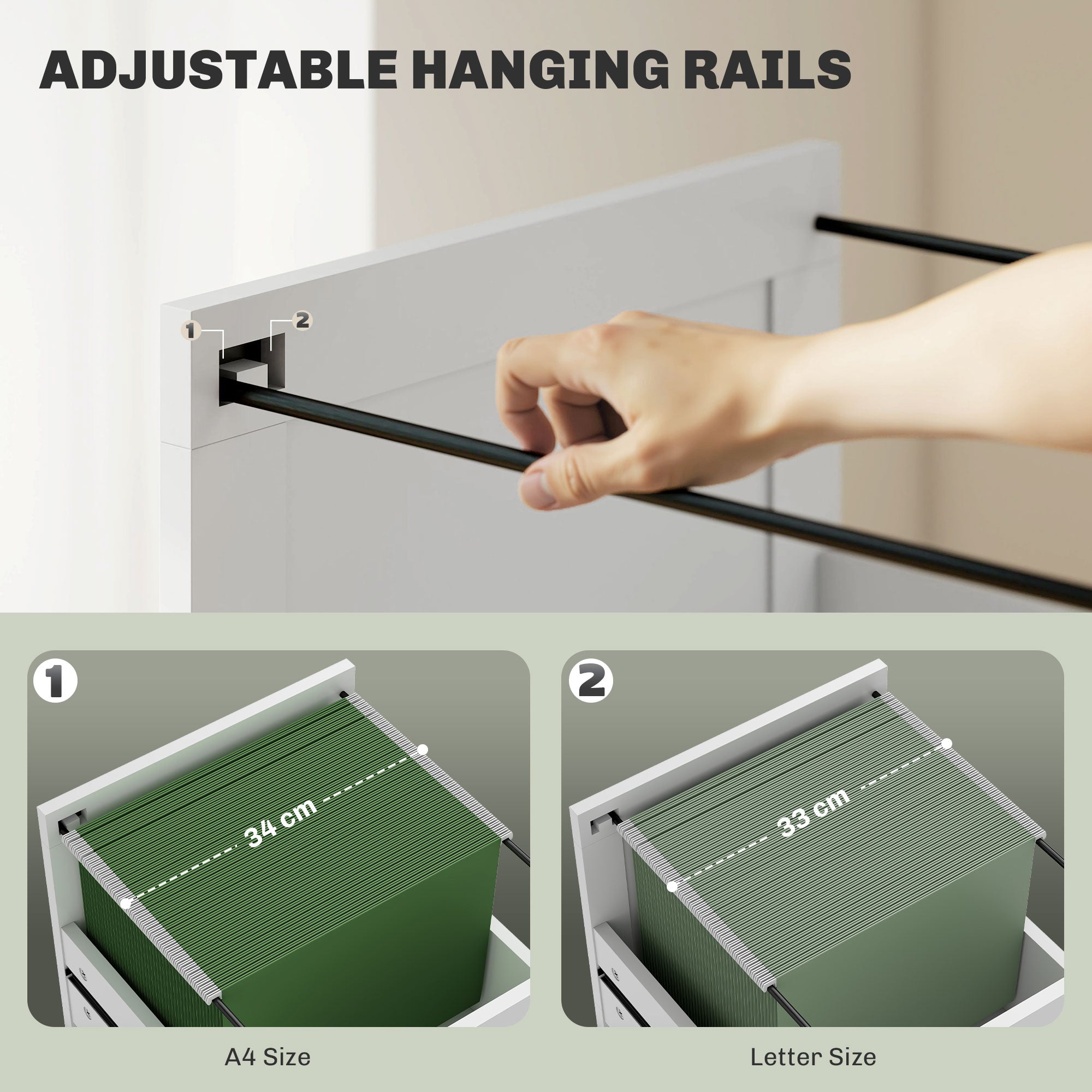 Versatile Use: Featuring three convenient drawers, this desk allows you to keep your supplies, documents, and accessories neatly organized. The bottom drawer is equipped with adjustable hanging rails, suitable for A4 or letter-size files. The generous space under the desk ensures optimal legroom, whether you're working, studying, or writing. This model integrates seamlessly into any workspace thanks to its practical and aesthetically pleasing design.