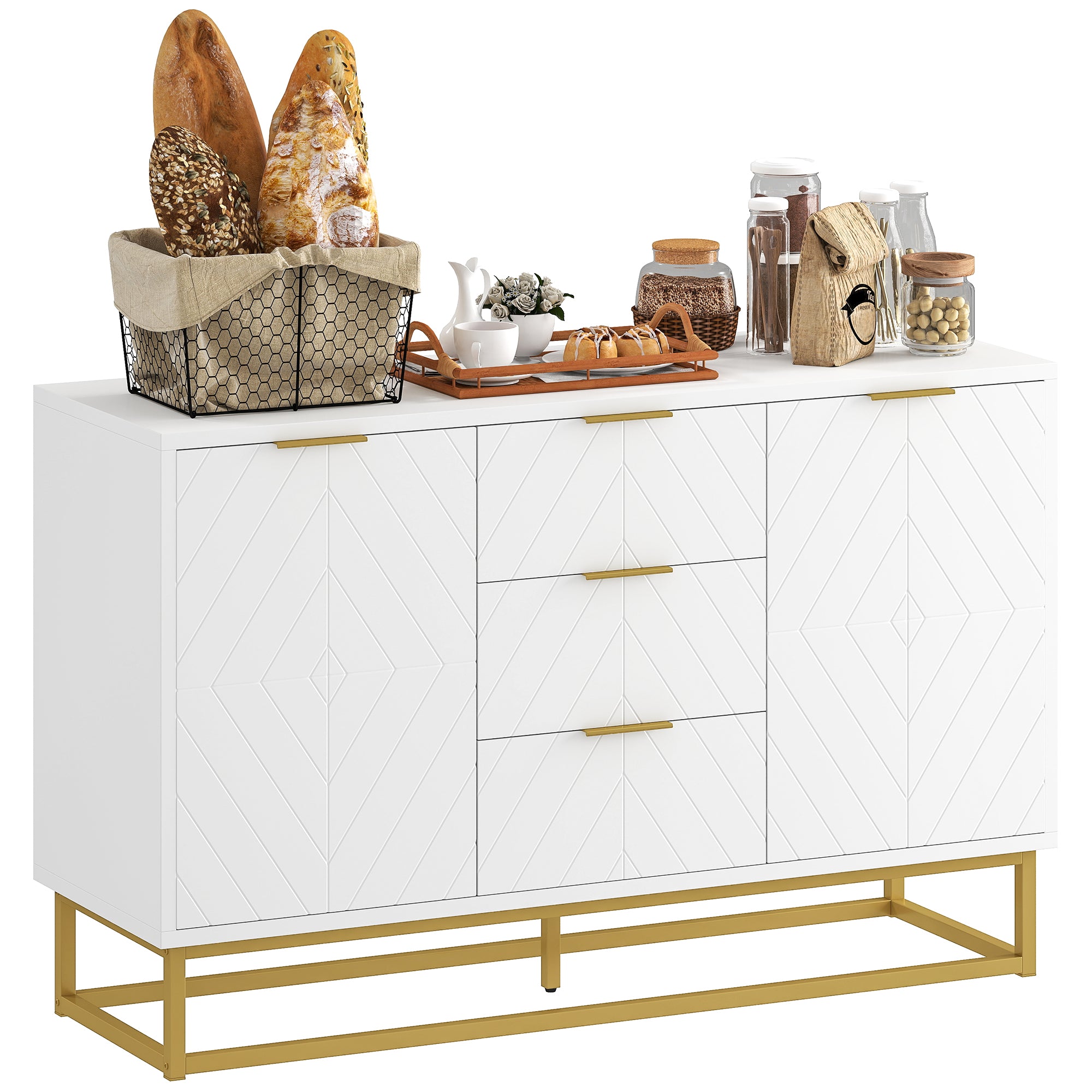 Timeless elegance: Bring a touch of brightness and refinement to your home with this beautifully finished white sideboard. Its gold base and hardware create a subtle and luxurious contrast, perfect for enhancing a dining room, living room, or modern office.