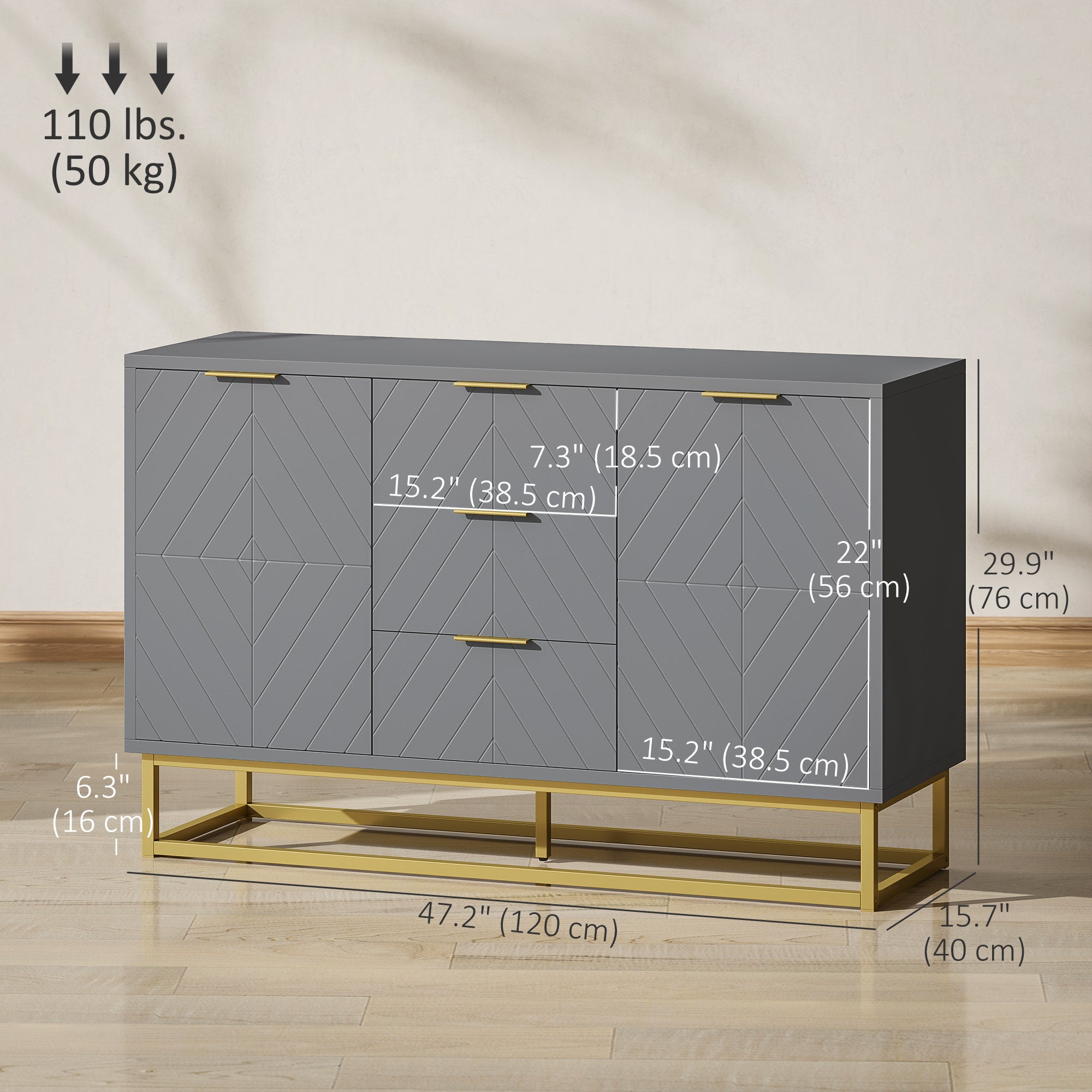 Grey sideboard with 3 drawers and 2 doors – Chic design with gold details