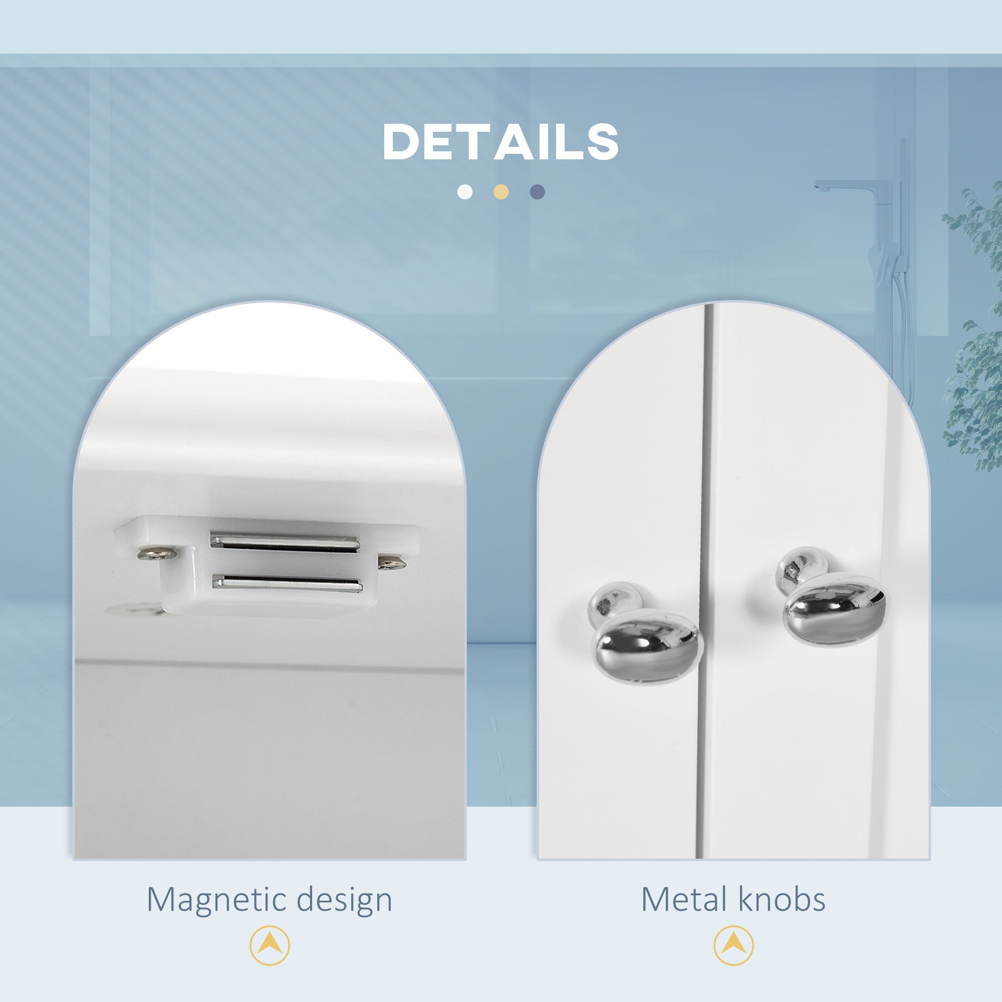 - Material: MDF with water-resistant finish + metal knobs