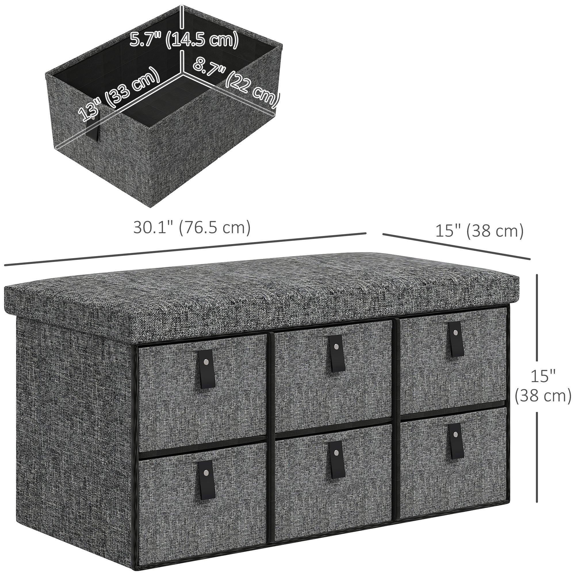 Optimized and discreet storage: Featuring six fabric drawers, this bench can store up to six pairs of shoes—one per drawer—for a space that's always clean and tidy. Each compartment keeps your shoes dust-free while remaining easily accessible.