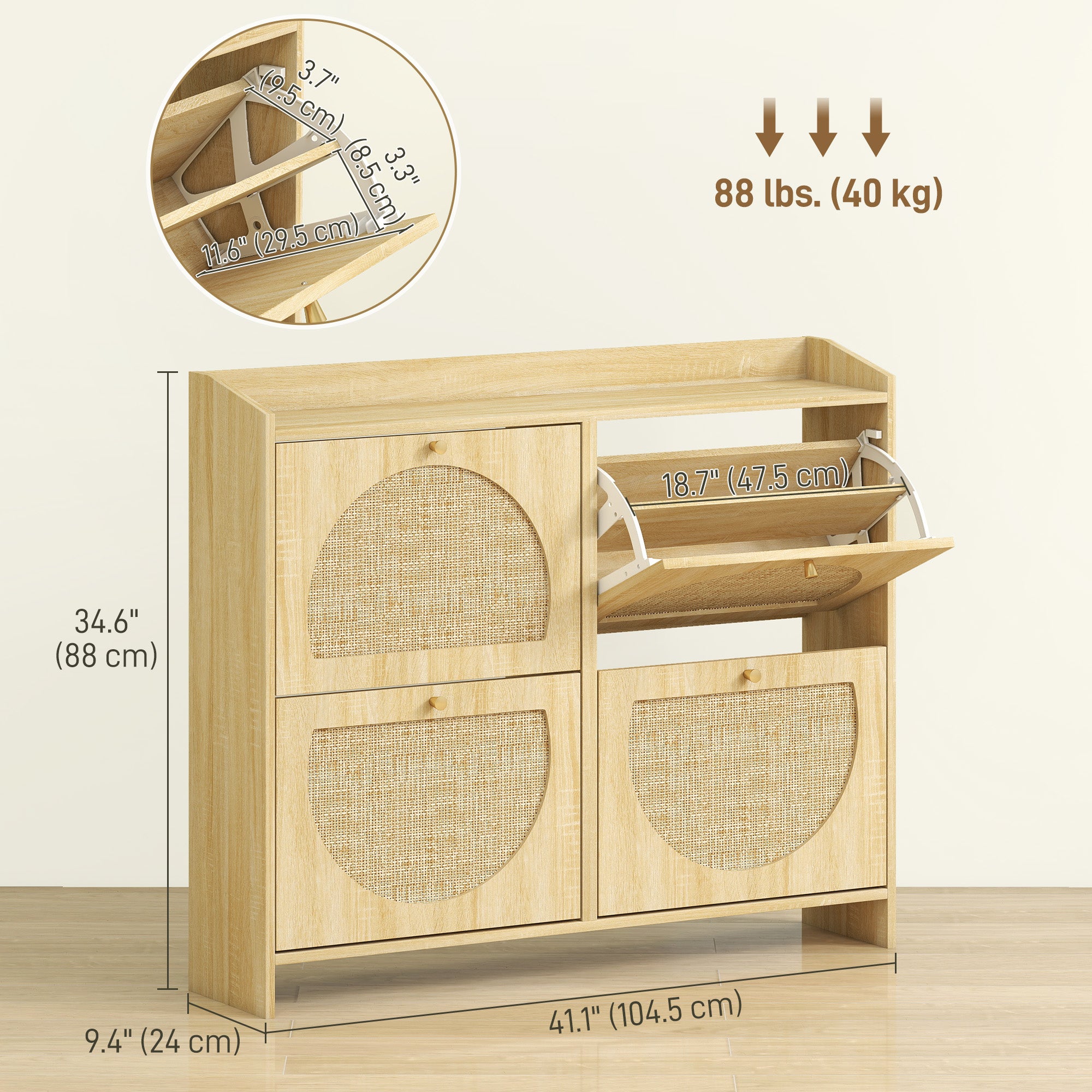- Type: Narrow shoe cabinet with rattan fronts