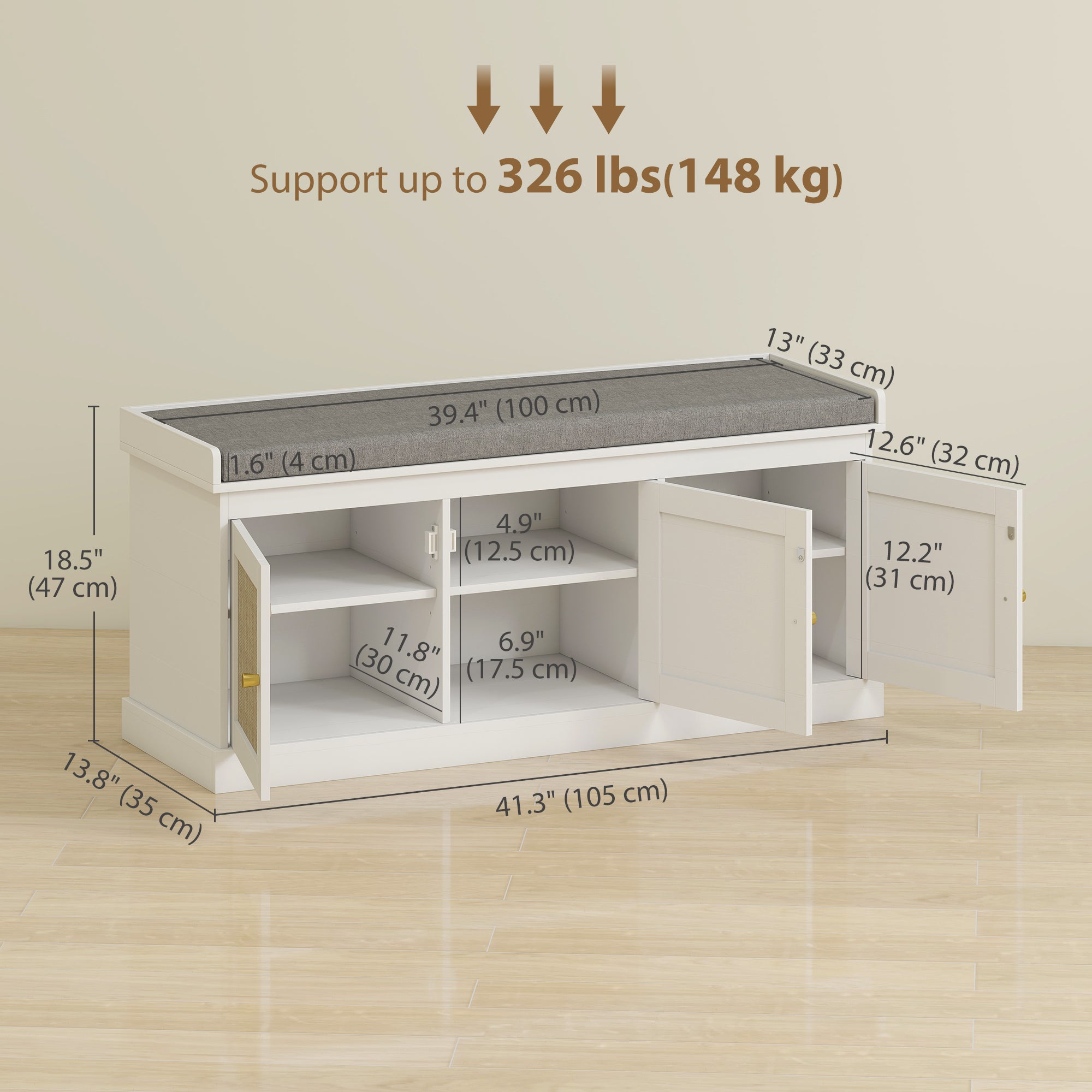 - Contains: 1 shoe bench with cushion, 1 installation manual