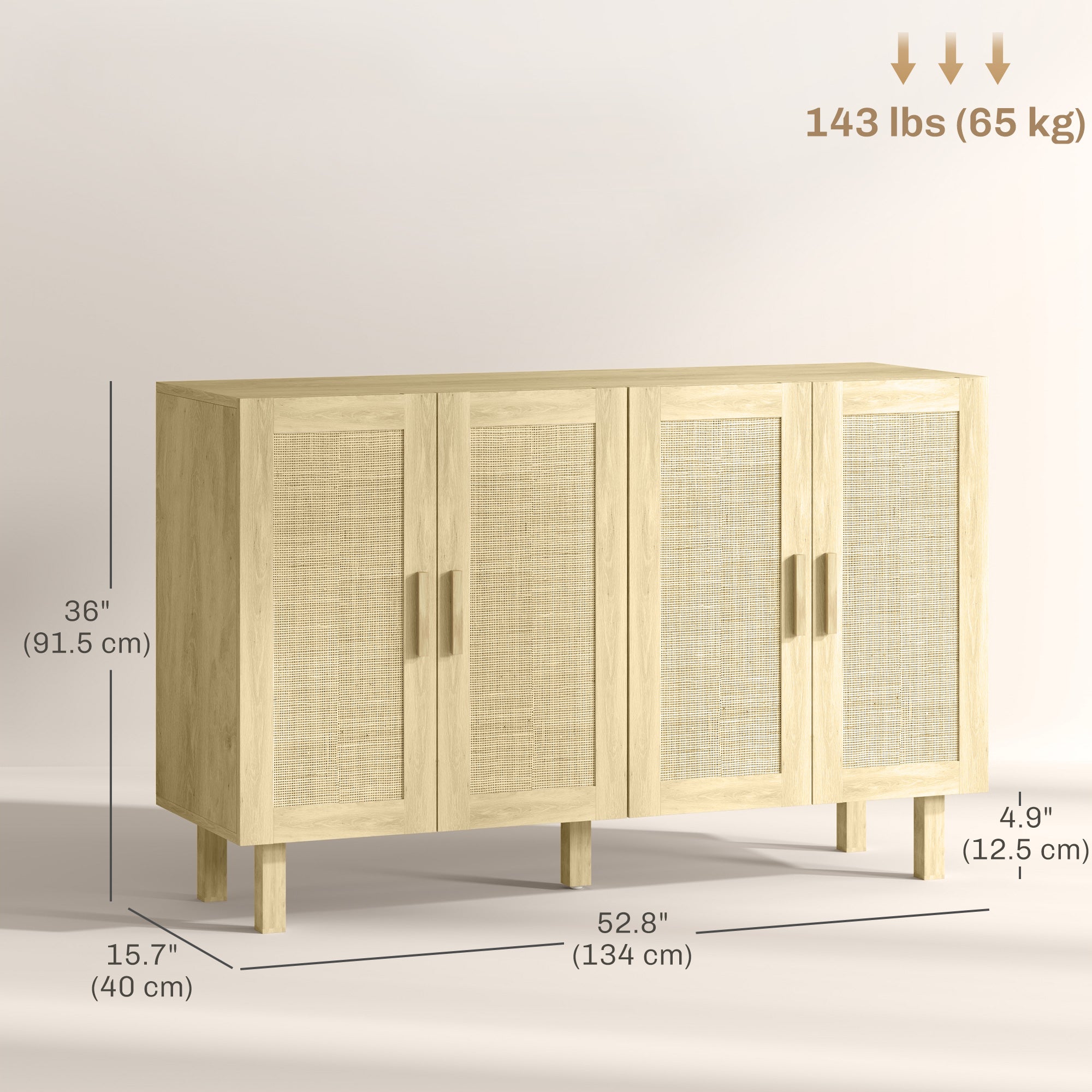 Comfort and design: This sideboard stands out with its woven rattan doors in a natural finish, bringing an elegant bohemian touch to your interior. Its refined and inviting design blends easily with various decorating styles, adding character to the kitchen, dining room, or entryway.