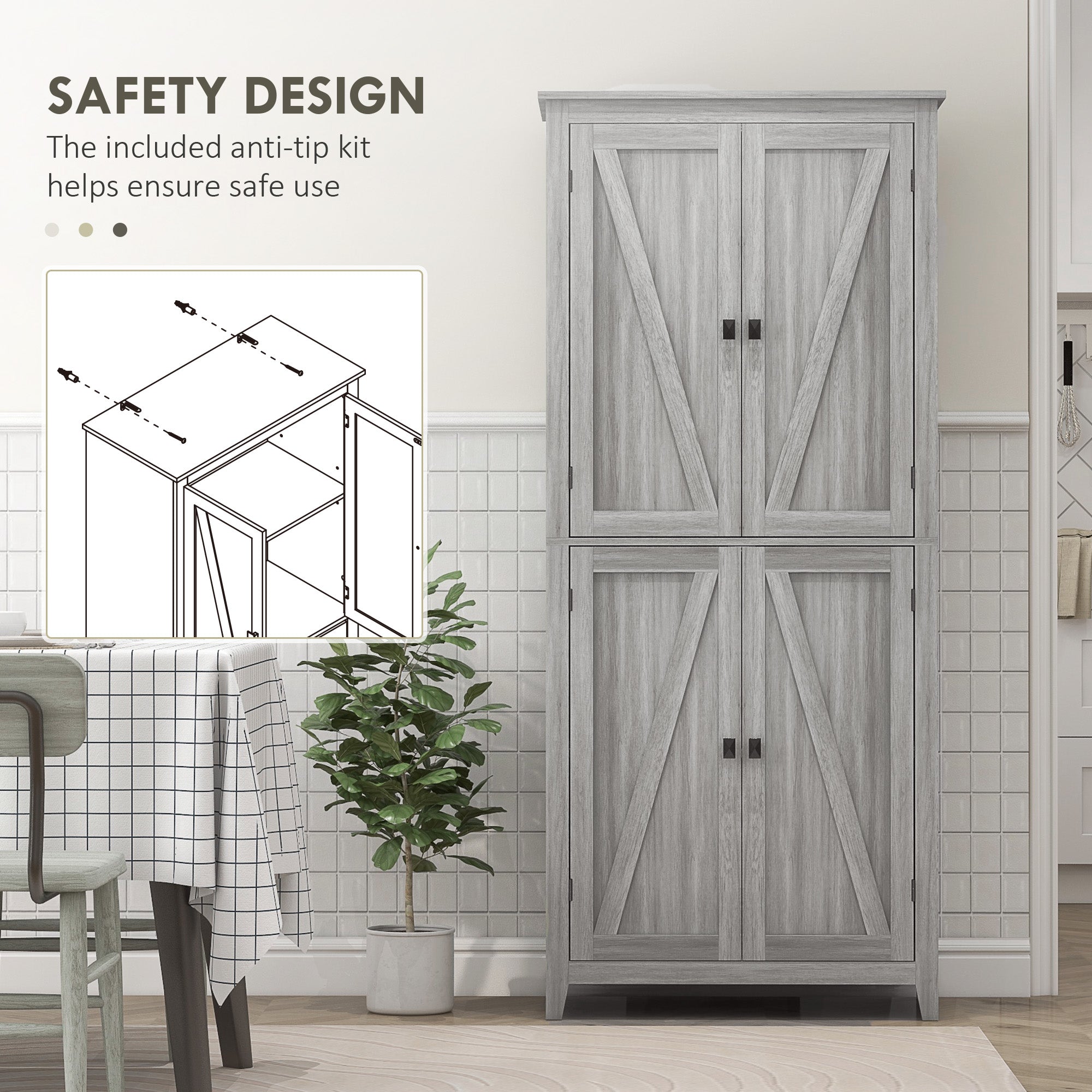Comfort and design: Transform your kitchen into a practical and stylish space with this modern farmhouse-style storage buffet. Its barn-style doors and trendy gray hue add a refined rustic touch while providing optimal storage space. No more clutter: your pots, pans, and groceries will finally have their place.