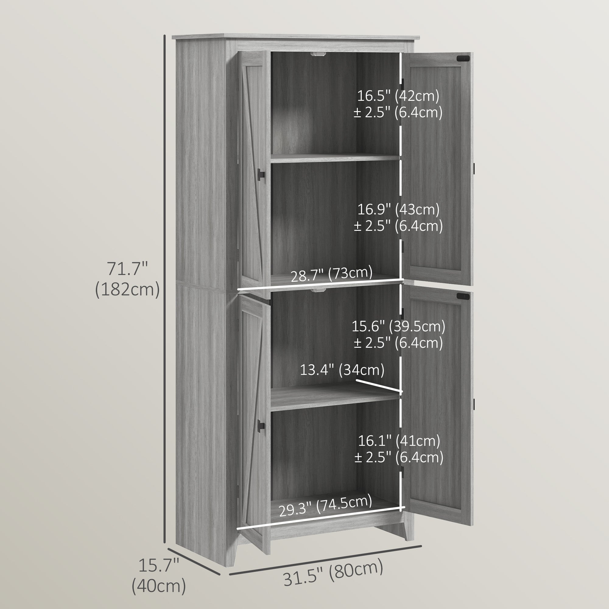 - Overall dimensions: 80 x 40 x 182 cm (31.5 in. W x 15.7 in. D x 71.7 in. H)