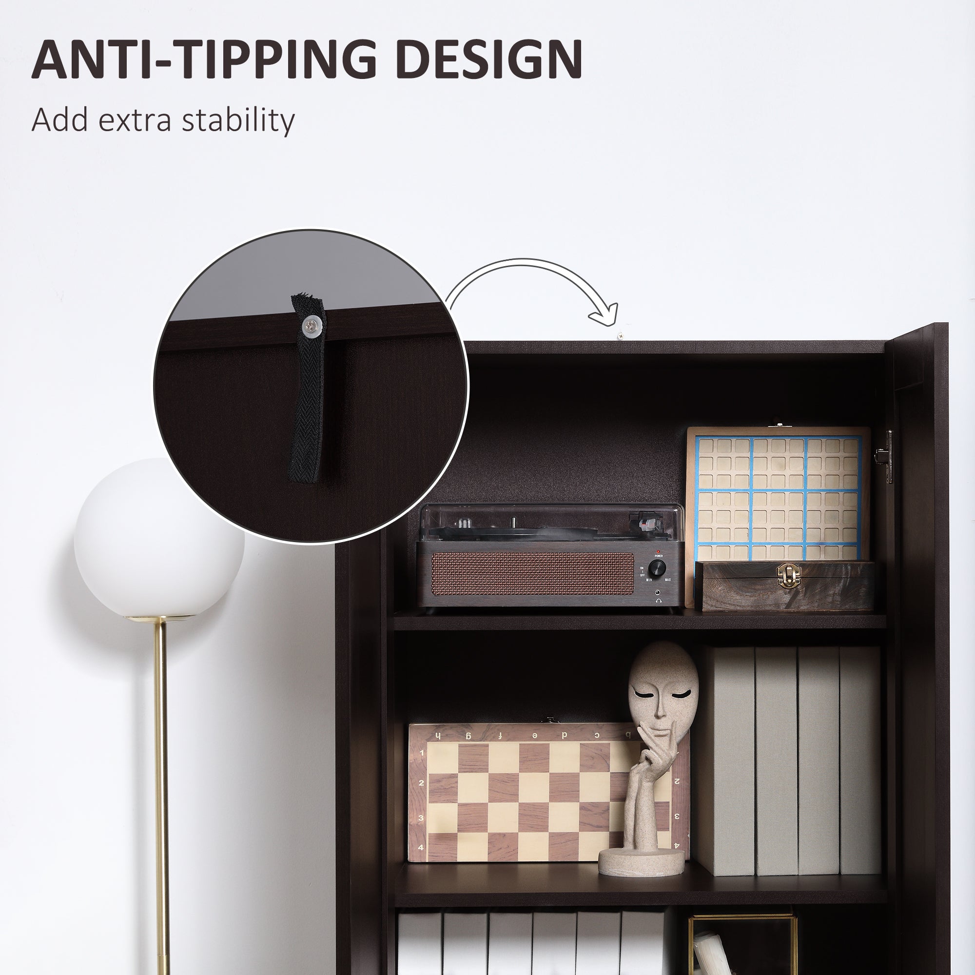 Dark Walnut Kitchen Sideboard - Two-Door Tall Cabinet with Adjustable Shelves
