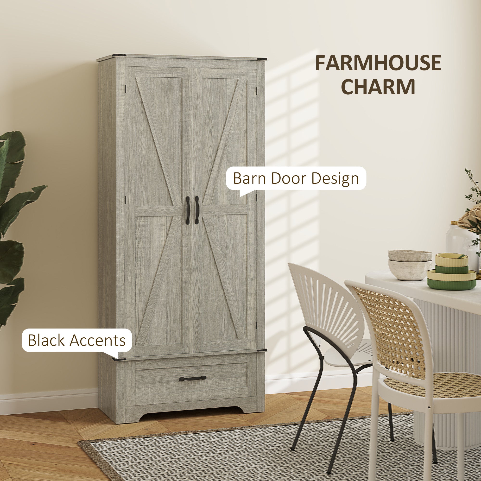Versatile Farmhouse Design: The kitchen storage cabinet features a charming farmhouse style with barn doors and sleek black accents, making it an attractive addition not only to your kitchen, but also to bathrooms and entryways.