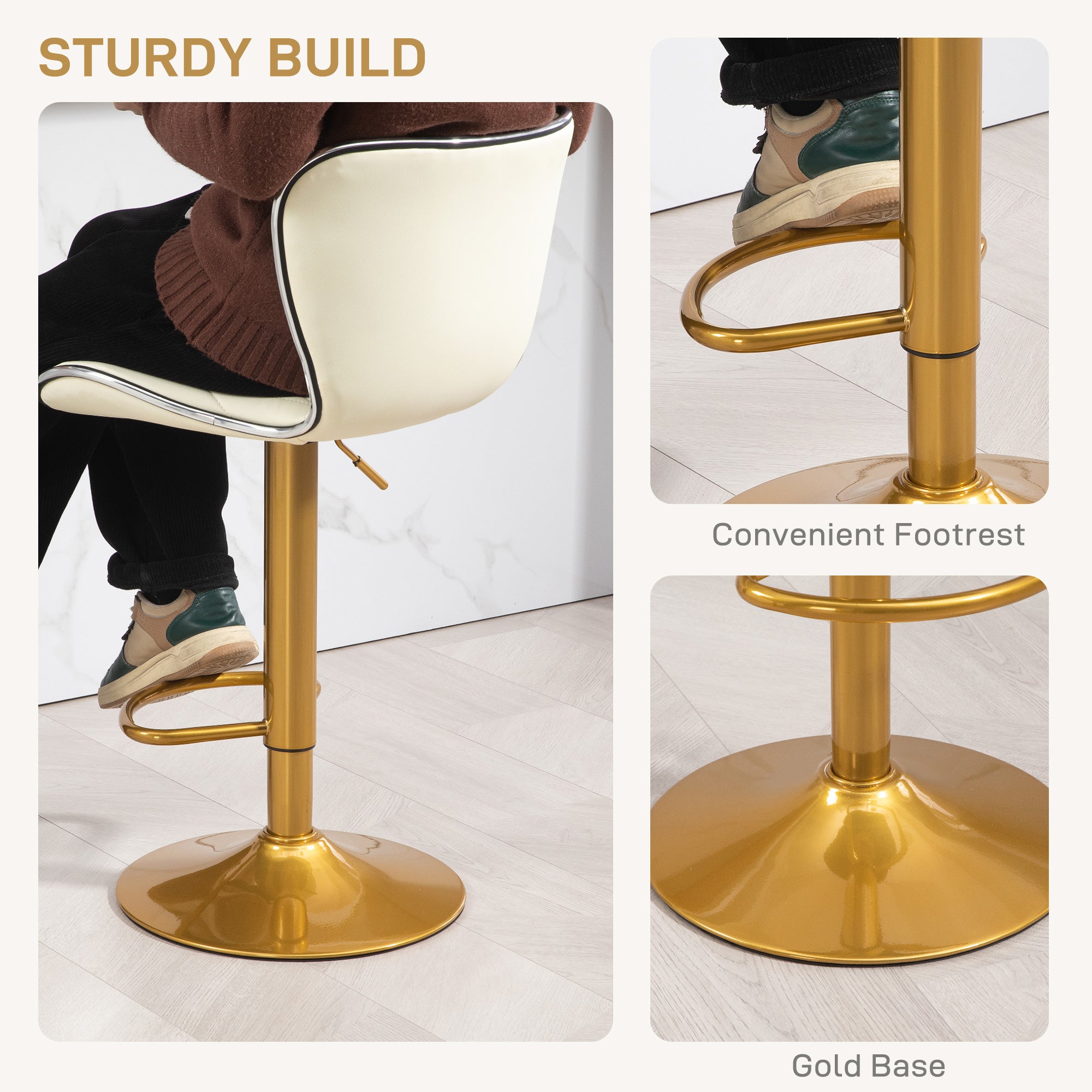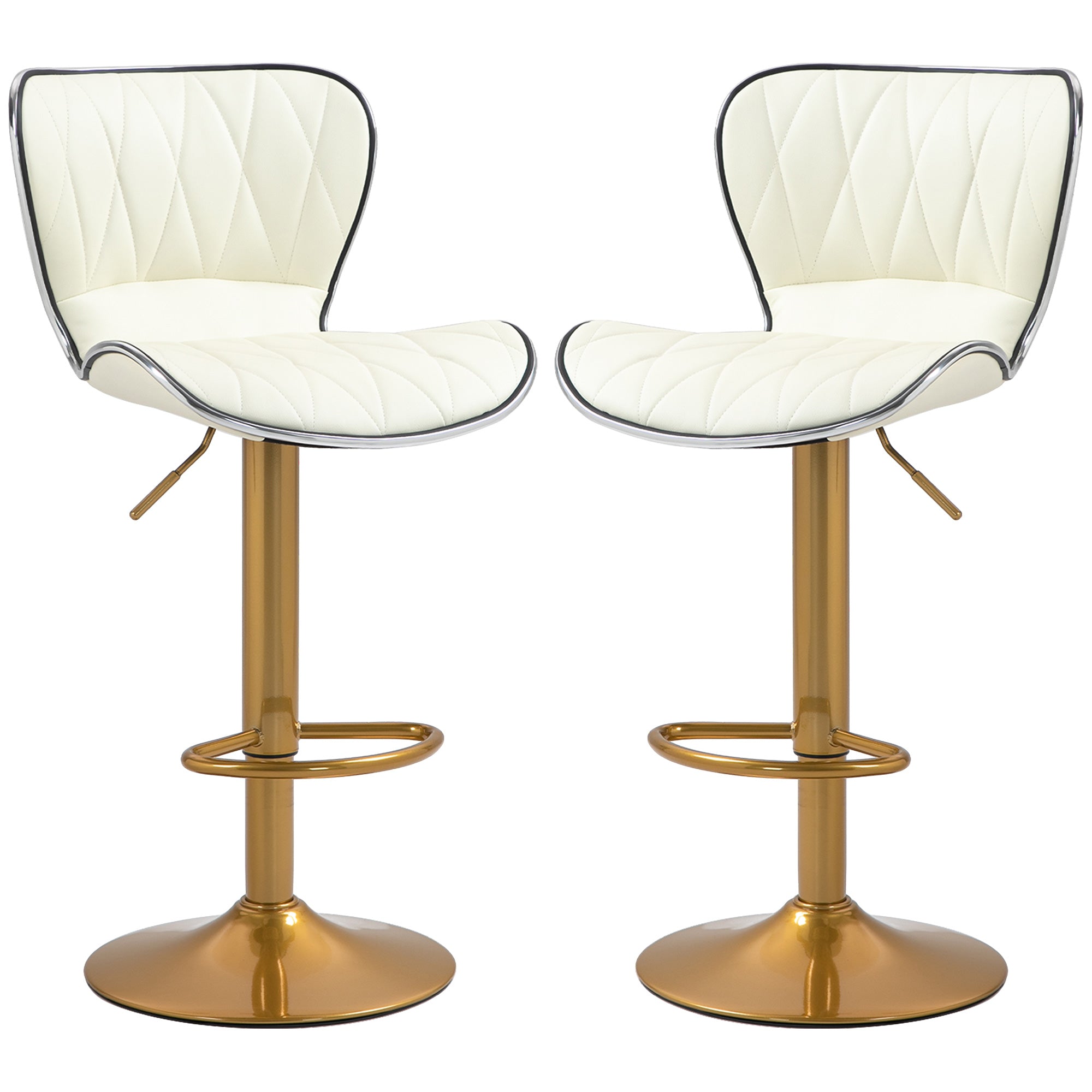 White bar stools with gold base – elegant and adjustable design (set of 2)