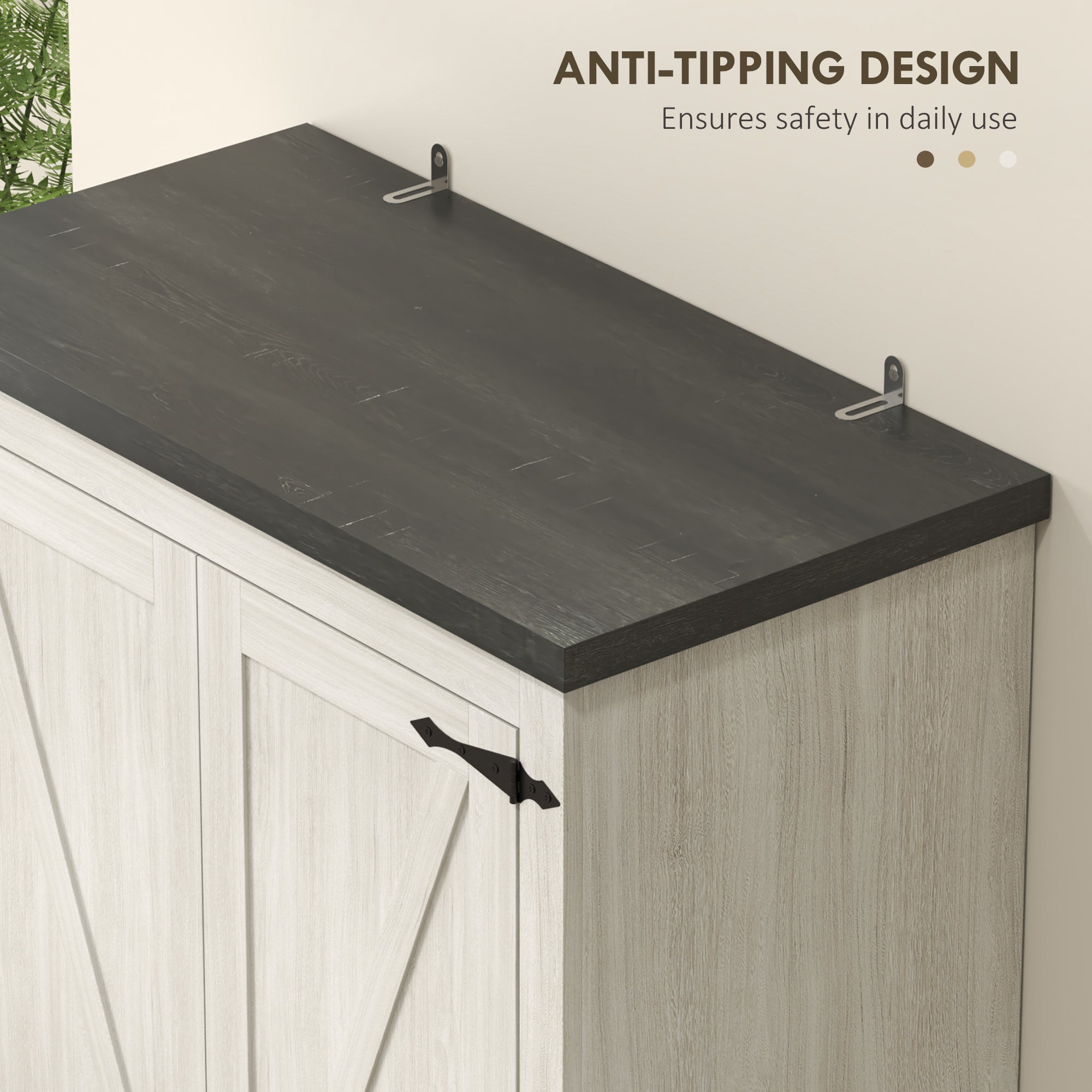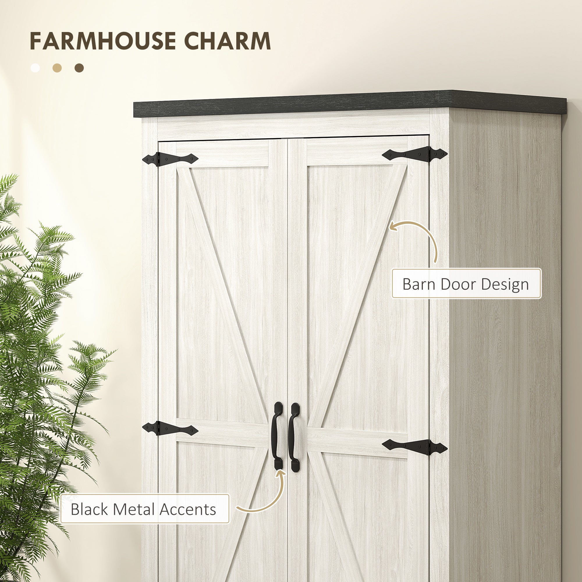 Distressed White Pantry - Barn Door Style Kitchen Cabinet with Drawers and Adjustable Shelves