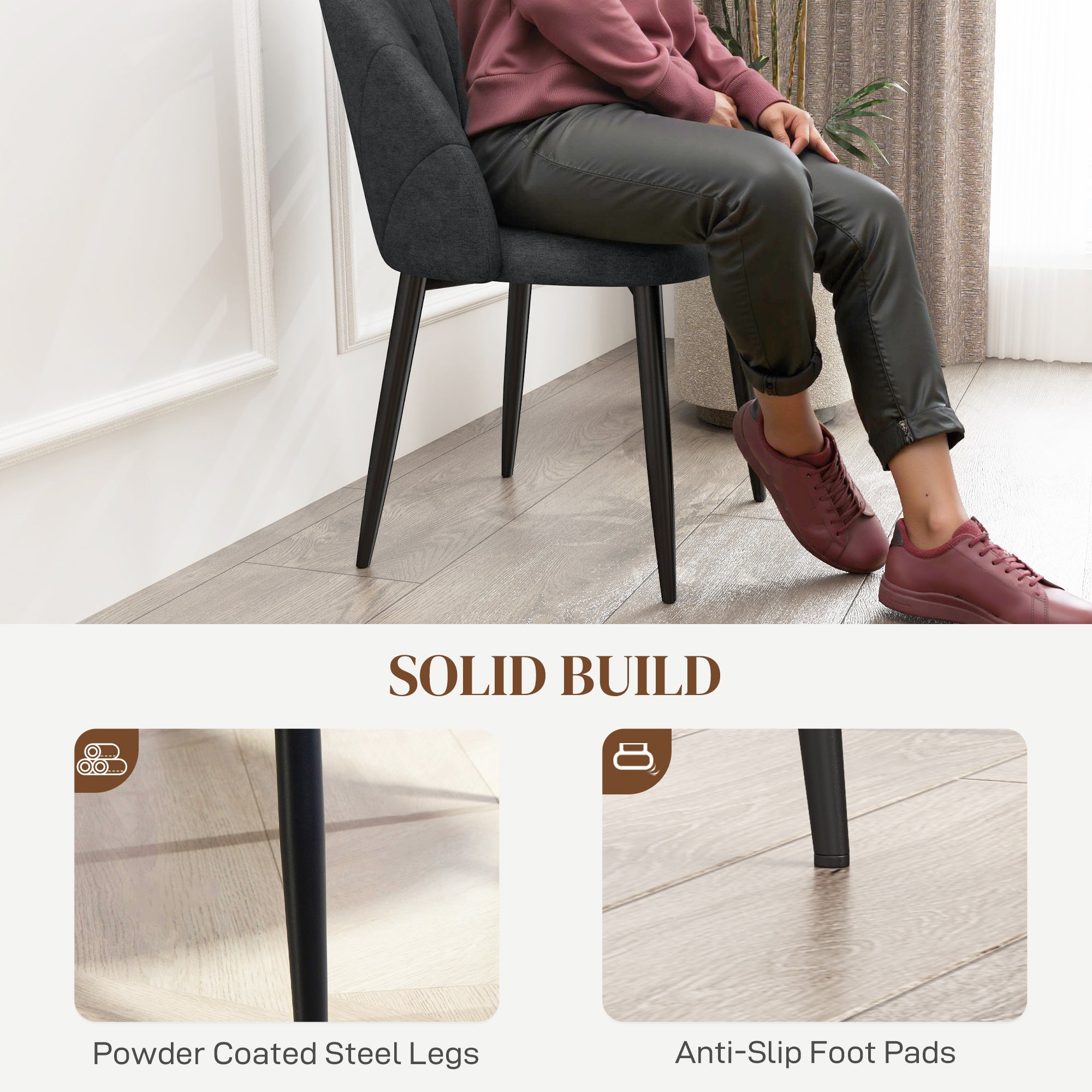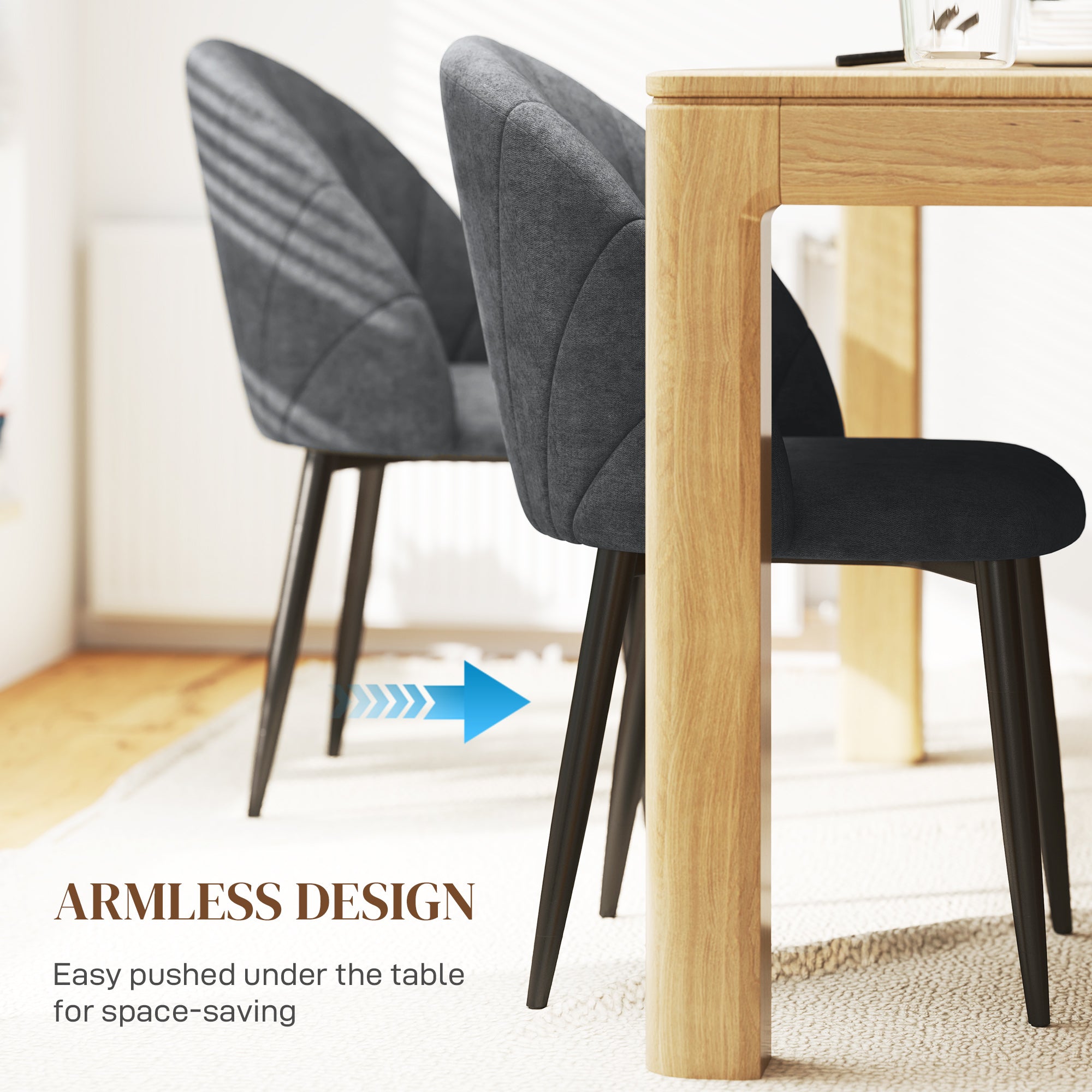 Versatile use: Perfect for the dining room, living room, or even a bedroom, these chairs blend seamlessly into any modern décor. Their armless design allows for easy storage under the table, ideal for maximizing space.
