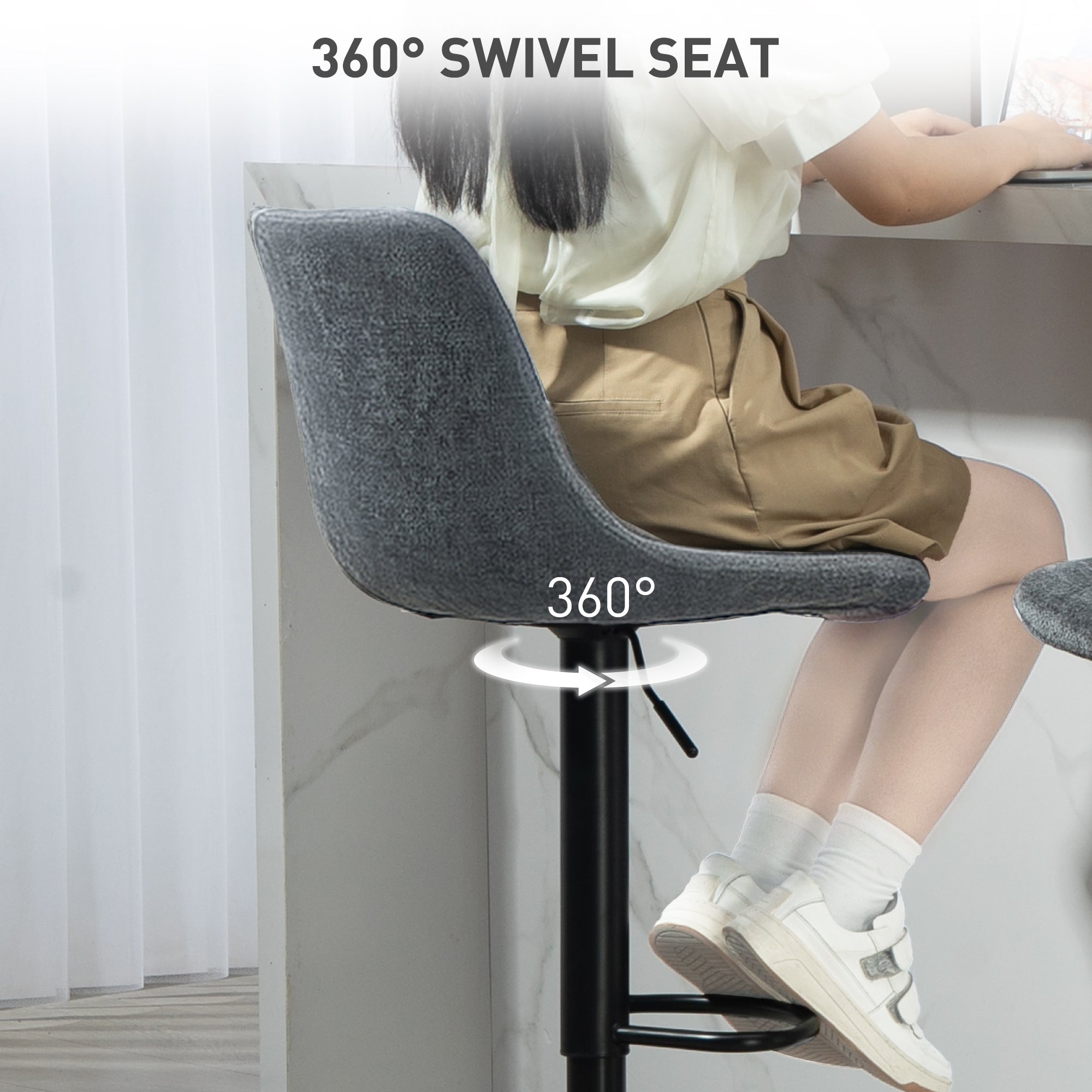 Adjustable bar stools in chenille fabric with steel base – Set of 2 (Anthracite grey and black)