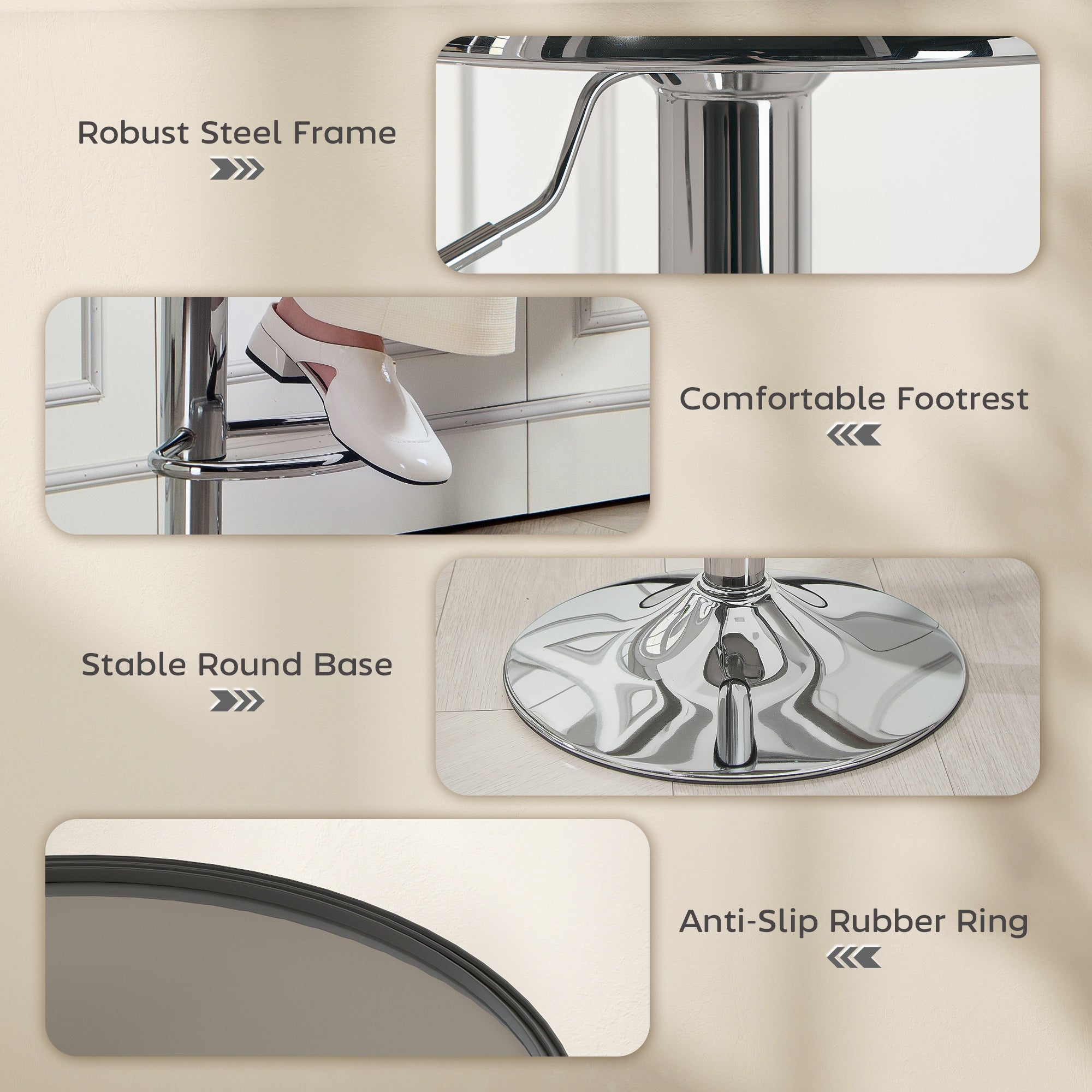 Versatile use: Thanks to their adjustable height of 60 to 80 cm, they adapt perfectly to counters, islands, and home bars. The 360° swivel seat allows for free conversation, making every moment more convivial and convenient.