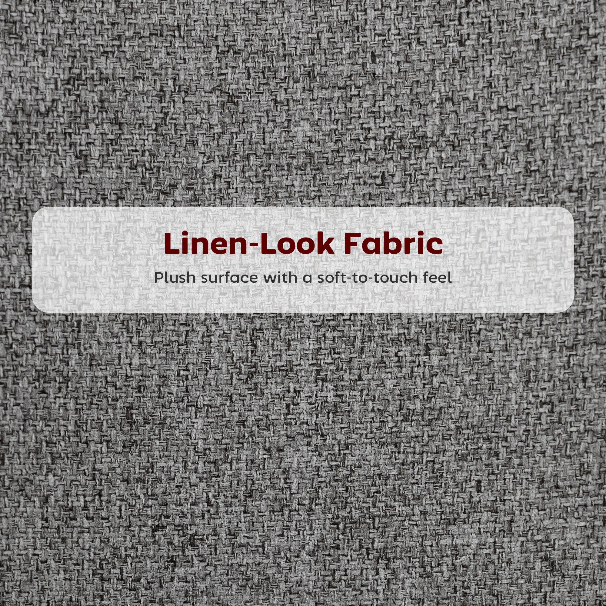 - Materials: Linen-look polyester, steel, foam, plywood