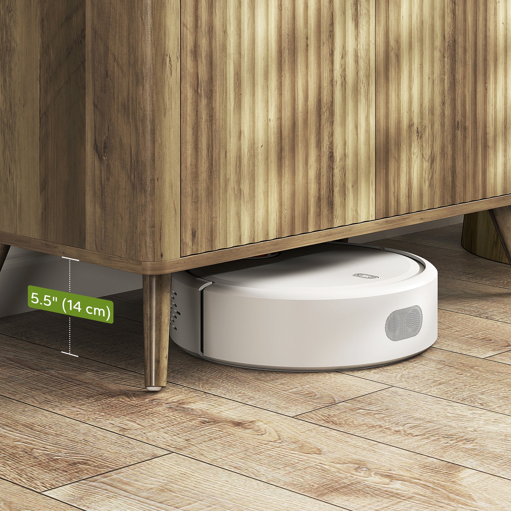 Guaranteed stability and safety: Equipped with an anti-tip kit and supported by four pine wood legs, this sideboard guarantees excellent solidity. Its 14 cm height under the base also allows easy passage of a robot vacuum cleaner.