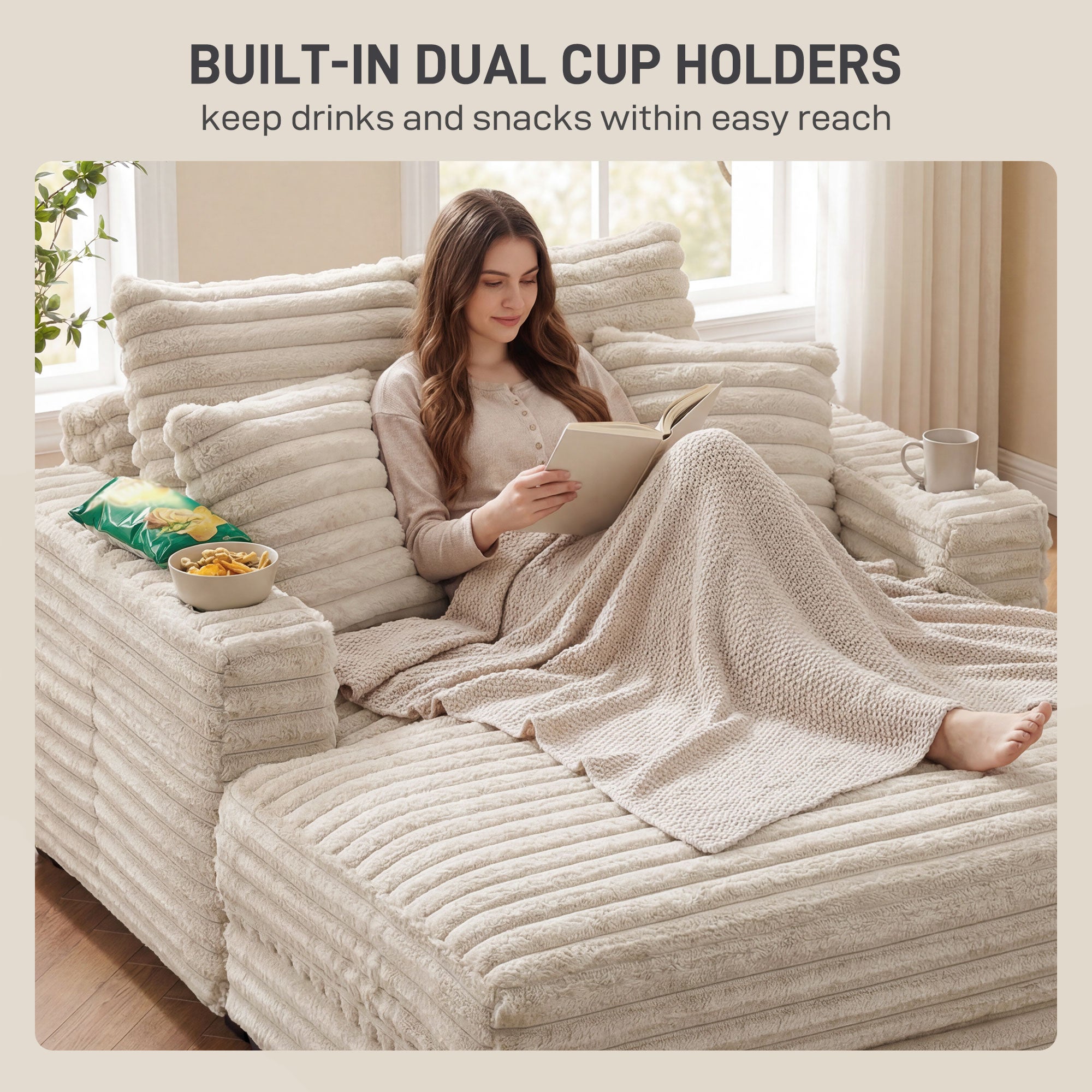With its 48.4-inch (123 cm) seat depth, this sofa offers ample space to relax alone or with a partner. Whether you're watching a show, chatting, or taking a nap, it creates a true haven of relaxation. Integrated cup holders in the armrests keep drinks and snacks within easy reach, perfect for movie nights or gaming sessions.