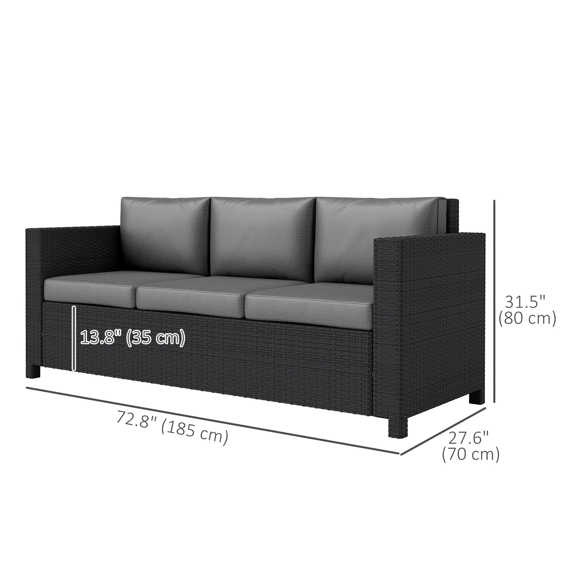- 3 Seater Rattan Sofa: The outdoor furniture sofa can seat up to 3 people, ideal for patio, porch, backyard, balcony, poolside, garden, lawn, bistro and more