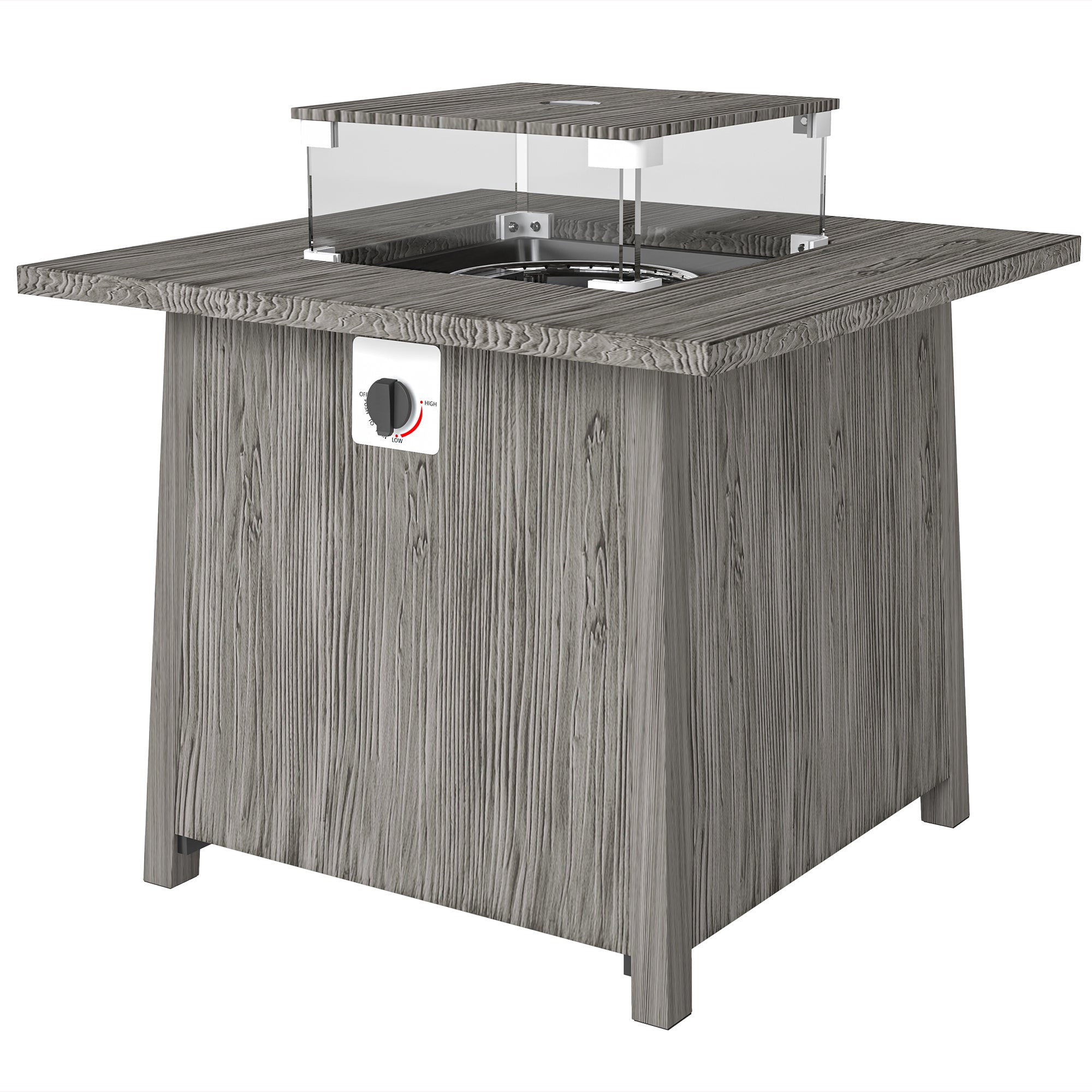 - Fire Pit Table: This propane fire pit set can also be used as a dining table or conversation table for meals and drinks. Its square tabletop, featuring adjustable legs and a wood grain finish, adds functionality and elegance to your backyard.