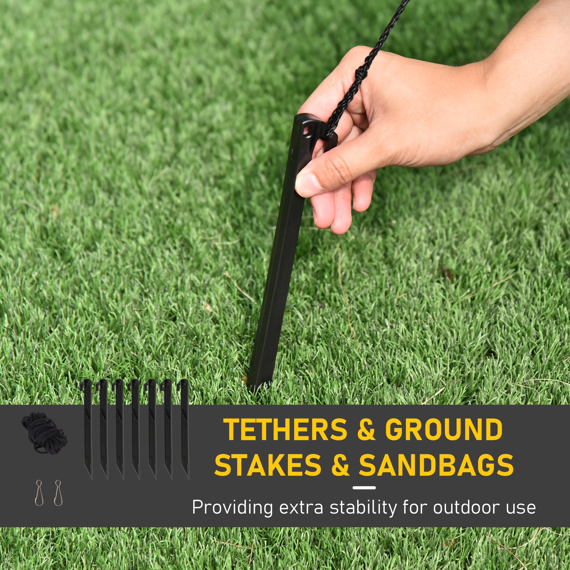High-quality materials: Made from IP44-certified water-resistant polyester, this decoration is suitable for both indoor and outdoor use. The included stakes, ropes, and sandbags ensure optimal stability even in windy conditions, while its durable design guarantees use season after season.