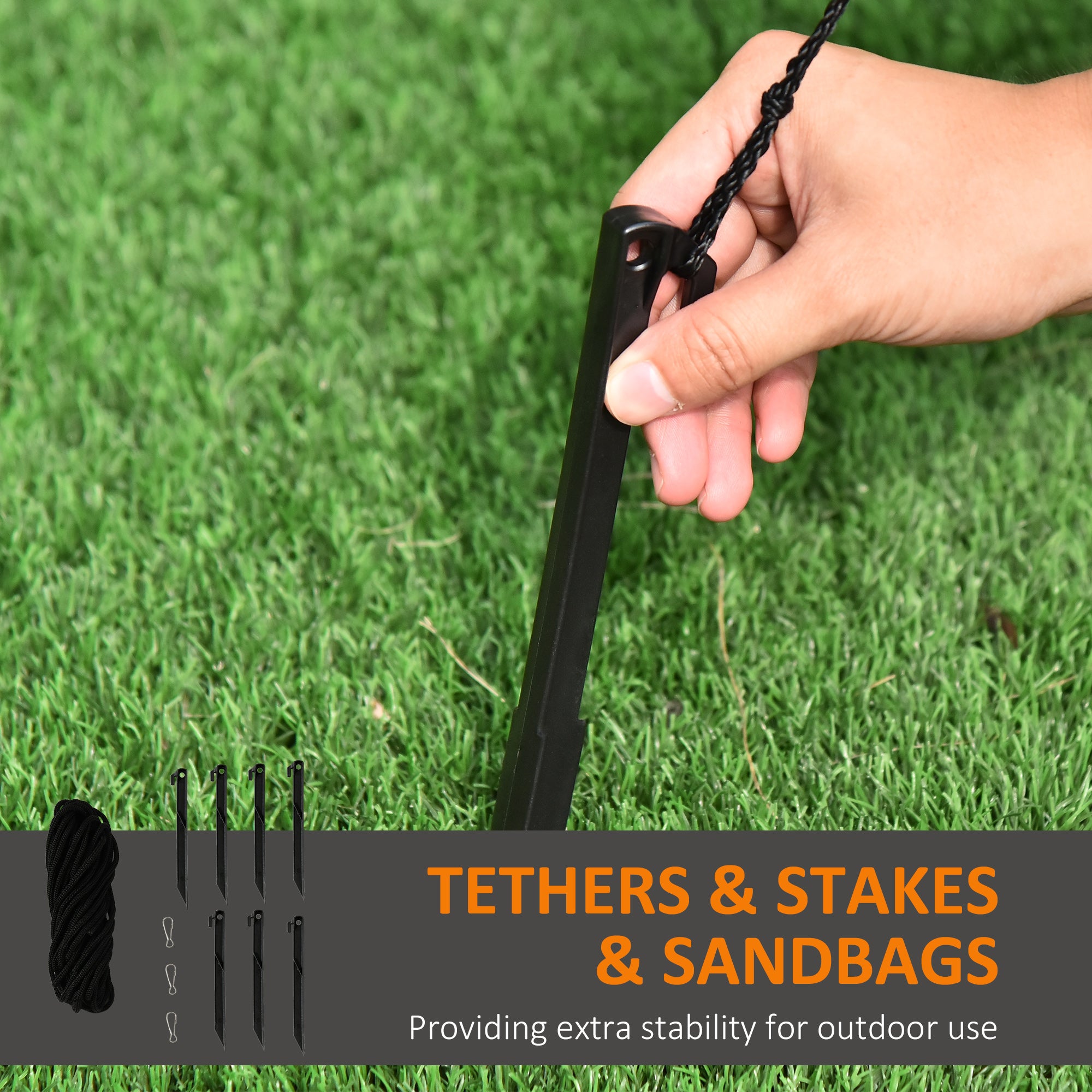 Stable and secure: Comes with stakes, ropes and sandbags, it remains firmly anchored to the ground, even on windy evenings.