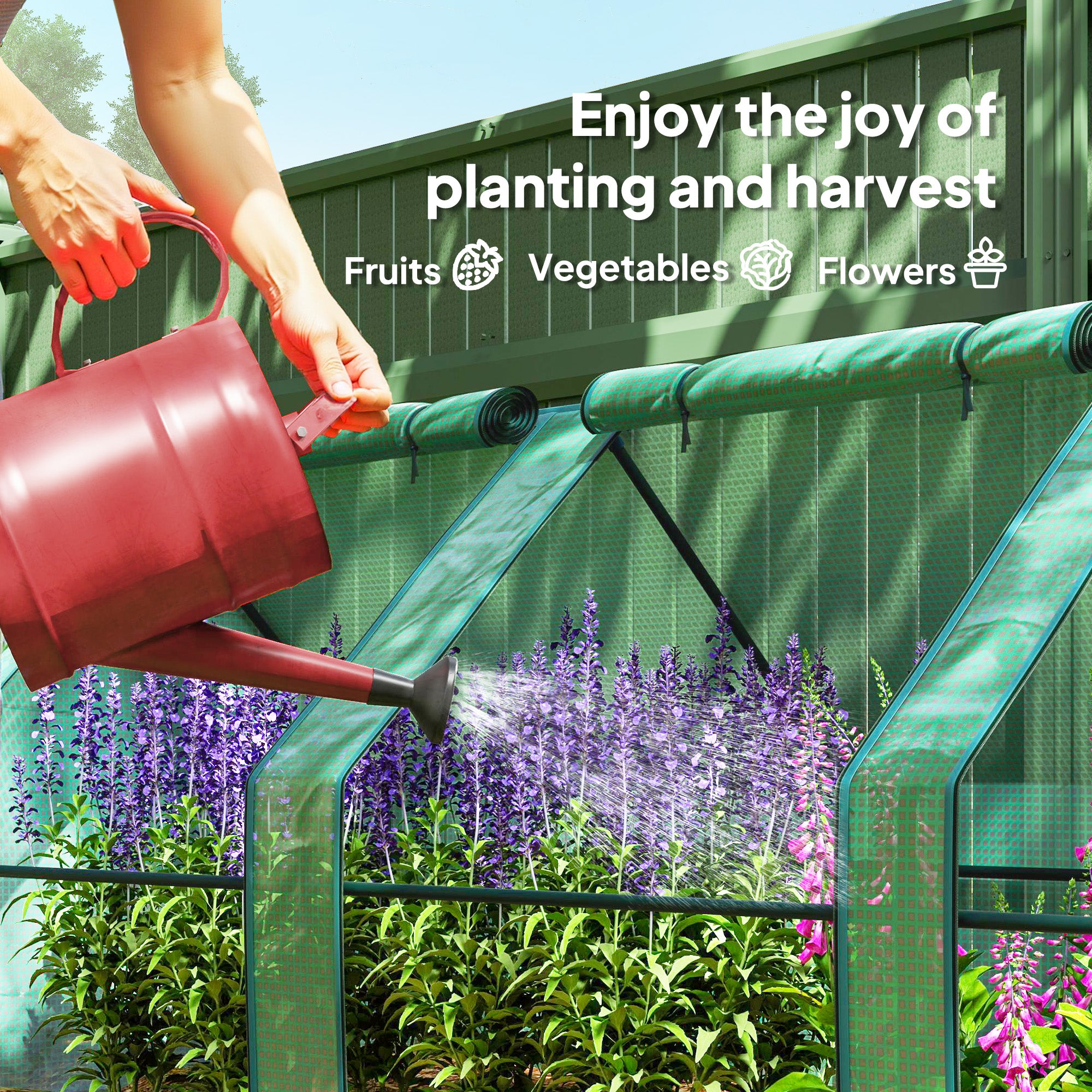 - Solid and Durable Design: Our portable greenhouse is constructed with a sturdy powder-coated steel frame for added stability. The extra-long cover design makes this tunnel greenhouse more waterproof and secure. Simply bury our mini greenhouse into the ground, a simple and convenient solution.