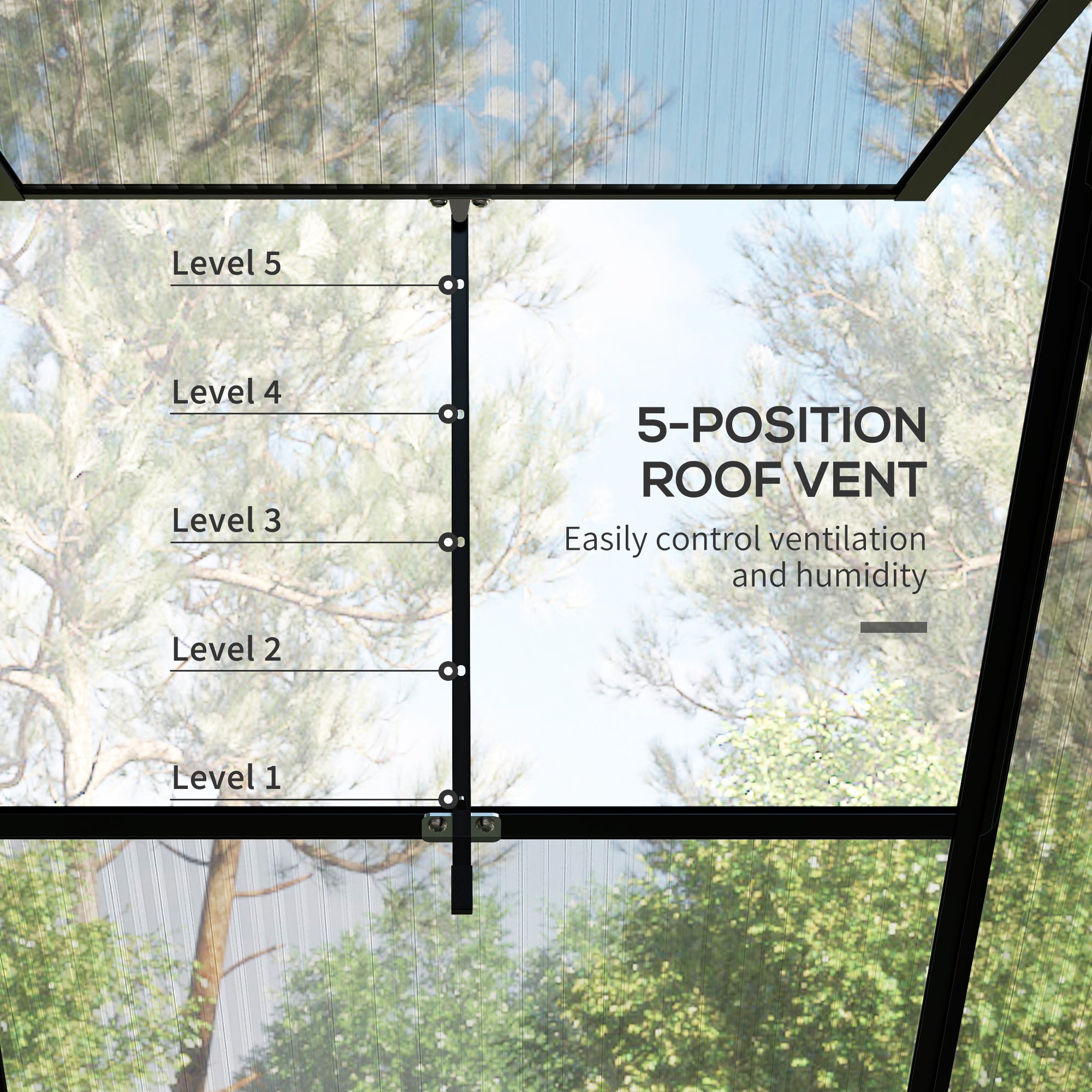 Ideal for gardening season after season, this greenhouse retains heat and protects plants from cold, rain, and small animals. The sliding door makes access and daily maintenance easy, while the adjustable roof vent allows for effective control of ventilation and humidity.