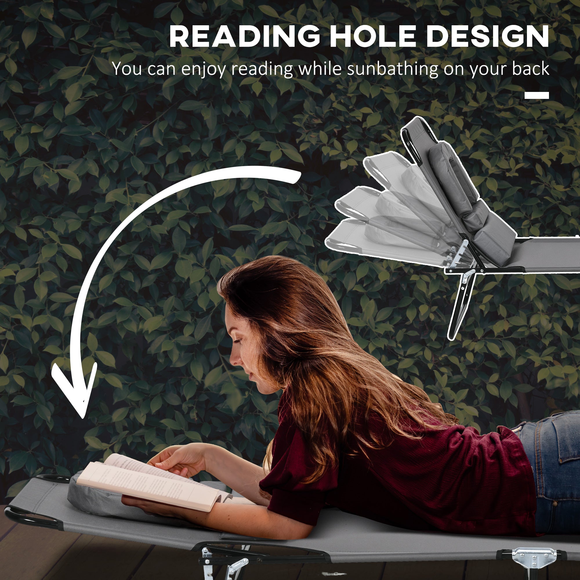 - Practical Design: The lounge chair features a padded headrest, a 4-level adjustable backrest, and a soft support cushion for added comfort. It also features a face hole, allowing you to comfortably sunbathe face down.